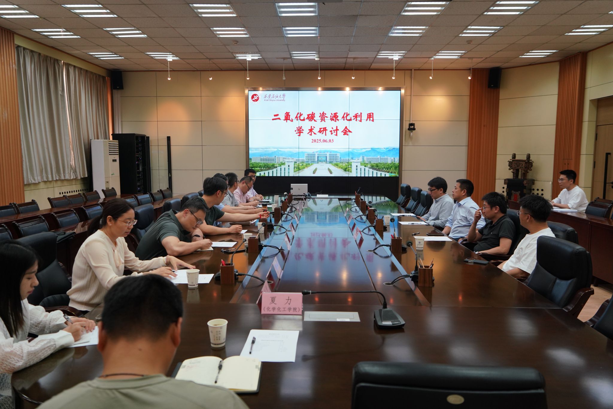 本次研討座談會(huì)邀請(qǐng)了中國科學(xué)院地球環(huán)境研究所粉塵與環(huán)境研究室主任黃宇教授、陜西師范大學(xué)化學(xué)化工學(xué)院國家杰青曹睿教授以及新西蘭坎特伯雷大學(xué)化學(xué)化工學(xué)院尹航教授等,圍繞CO?催化轉(zhuǎn)化、捕集封存等領(lǐng)域分享前沿成果,并針對(duì)我校學(xué)科特色,就碳學(xué)科建設(shè)、研究方向及人才培養(yǎng)等提出了指導(dǎo)建議。
