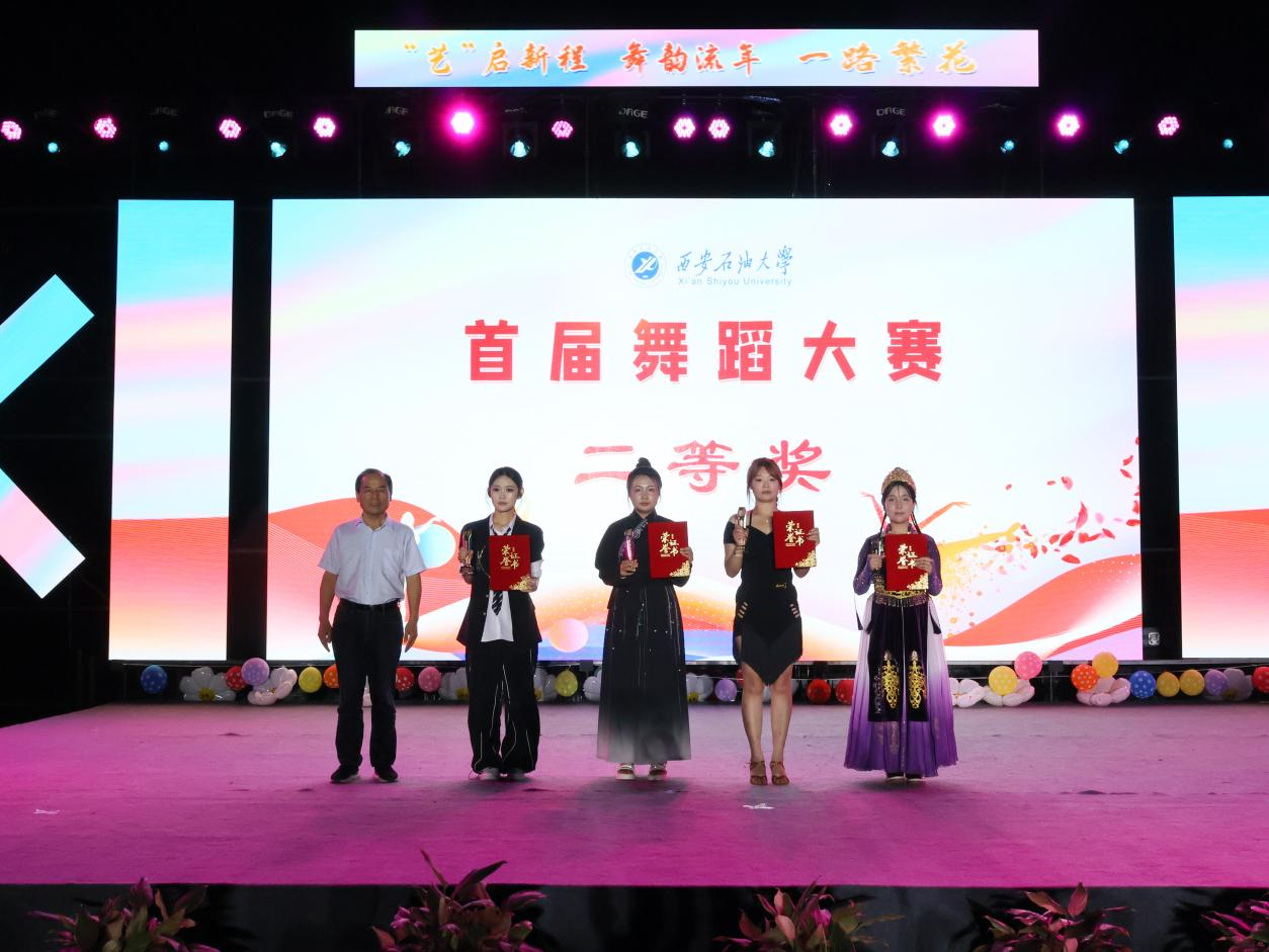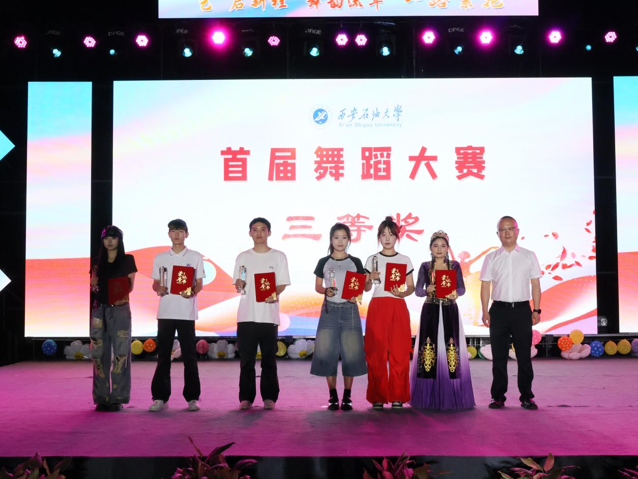 經(jīng)評委評審,外國語學(xué)院《消失》、音樂系《新時代石油接班人》獲一等獎;機械工程學(xué)院《牽絲戲》、人文學(xué)院《路西法》、外國語學(xué)院《Go Girl》、預(yù)科班《石榴之花》獲二等獎;計算機學(xué)院《無需揚鞭自奮蹄》、人文學(xué)院《麥西萊普》、電子工程學(xué)院《Diamond》、石油工程學(xué)院《Keep on popping》、地球科學(xué)與工程學(xué)院《Cheer up》、體育學(xué)院《We rock》獲三等獎。與會領(lǐng)導(dǎo)為獲獎隊伍頒獎。