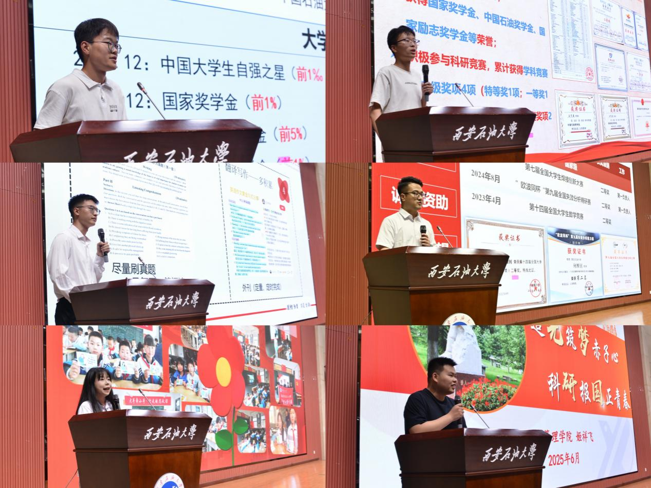 六位來(lái)自不同學(xué)院的優(yōu)秀受助學(xué)子,誠(chéng)摯地分享了他們奮斗的青春故事與成長(zhǎng)感悟,專業(yè)學(xué)習(xí)的高效方法,平衡學(xué)業(yè)與社會(huì)實(shí)踐的時(shí)間管理技巧,及面對(duì)困難的心態(tài)調(diào)適經(jīng)驗(yàn)。他們的故事里有學(xué)業(yè)拔尖,將感恩之心化為志愿服務(wù)的溫暖實(shí)踐;有心懷能源報(bào)國(guó)志,刻苦攻關(guān),成功推免至頂尖學(xué)府的奮進(jìn)足跡;有在學(xué)科競(jìng)賽中披荊斬棘、勇攀高峰的執(zhí)著追求;有潛心鉆研,在學(xué)術(shù)前沿篤行追夢(mèng)的堅(jiān)定身影;有百折不撓,在探索中毅勇前行的不屈精神;有從受助者成長(zhǎng)為助人者,將溫暖傳遞的動(dòng)人蛻變。石工學(xué)子安世亮表示:“國(guó)家和學(xué)校的獎(jiǎng)助政策讓我能夠心無(wú)旁騖的求學(xué),更是精神上的鼓舞,也時(shí)刻提醒我要懷感恩之心,立心中之志。”經(jīng)管院研究生姬祥飛鼓勵(lì)學(xué)弟學(xué)妹們:“我們新時(shí)代青年要敢于有夢(mèng)、勇于追夢(mèng)、勤于圓夢(mèng)?!彼麄兊墓适码m各不相同,但都閃耀著自強(qiáng)不息、感恩奉獻(xiàn)的光芒,深深打動(dòng)了在場(chǎng)的每一位聽(tīng)眾。