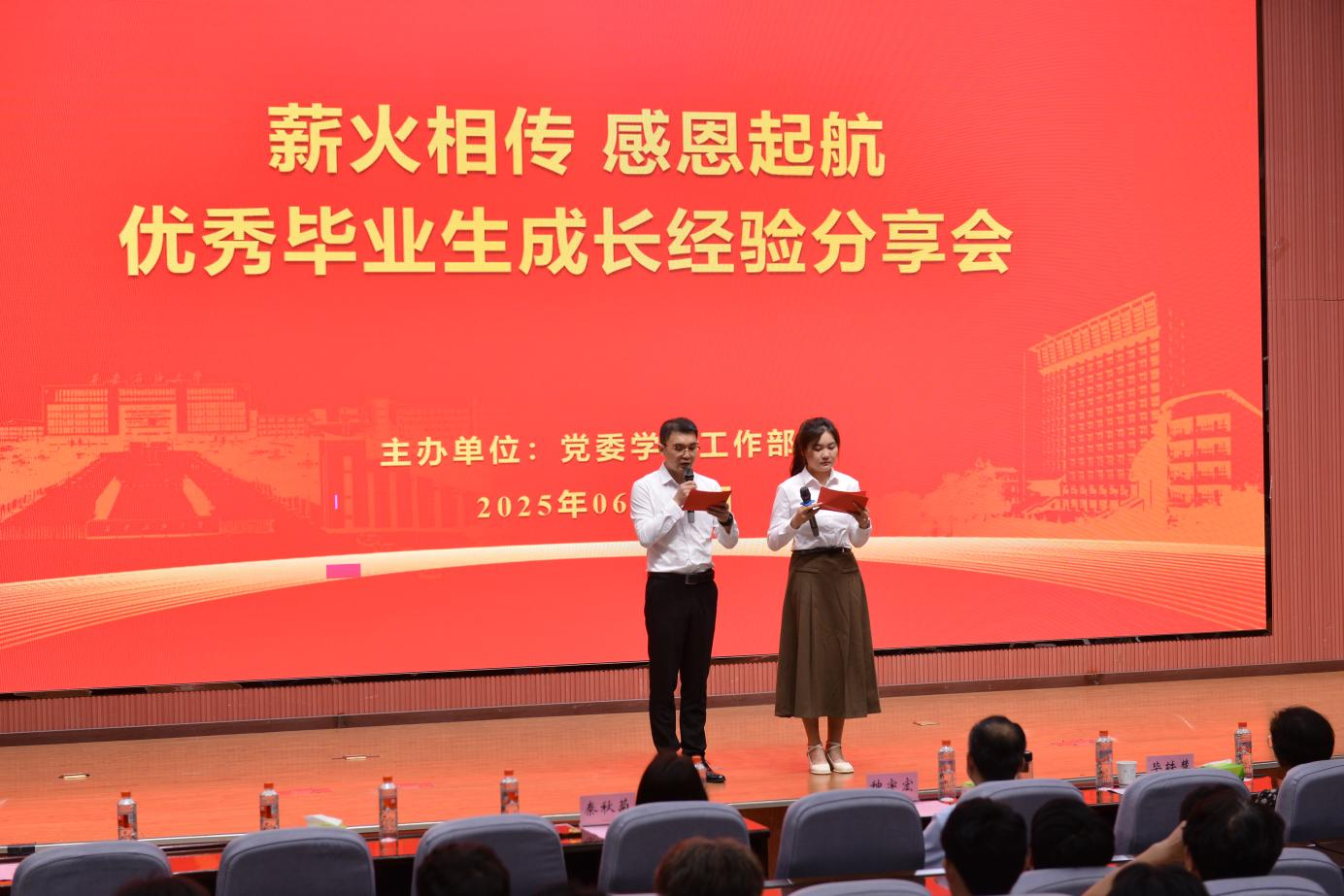 6月18日下午,“薪火相傳?感恩啟航”2025屆優(yōu)秀受助畢業(yè)生成長(zhǎng)經(jīng)驗(yàn)分享會(huì)在我校鄠邑校區(qū)弘石學(xué)術(shù)報(bào)告廳溫情啟幕。副校長(zhǎng)種宇宏出席活動(dòng)并致辭,黨委學(xué)生工作部學(xué)生資助工作負(fù)責(zé)人,財(cái)務(wù)處負(fù)責(zé)人,6位優(yōu)秀受助畢業(yè)生代表及各院(系)低年級(jí)學(xué)生代表齊聚一堂,共話成長(zhǎng),傳遞感恩力量。