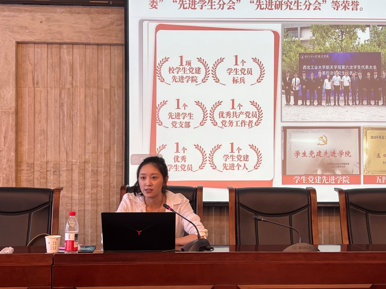 西北工業(yè)大學(xué)航天學(xué)院輔導(dǎo)員孫艷梅為全體學(xué)生黨支部書記作《黨建賦能,以高質(zhì)量黨建推動(dòng)高質(zhì)量人才培養(yǎng)》專題講座。她從強(qiáng)化政治引領(lǐng)、筑牢理想信念“強(qiáng)堡壘”、夯實(shí)“總師型”人才培養(yǎng)思想根基,深化黨建賦能、點(diǎn)燃創(chuàng)新驅(qū)動(dòng)“新引擎”、鍛造“總師型”人才培養(yǎng)能力基礎(chǔ)和弘揚(yáng)榜樣力量、投身大國(guó)重器“主戰(zhàn)場(chǎng)”、砥礪“總師型”人才培養(yǎng)強(qiáng)國(guó)擔(dān)當(dāng)?shù)热齻€(gè)維度介紹了航天學(xué)院黨建“雙創(chuàng)”工作舉措與成效,為高質(zhì)量黨建引領(lǐng)事業(yè)高質(zhì)量發(fā)展提供了有益借鑒。