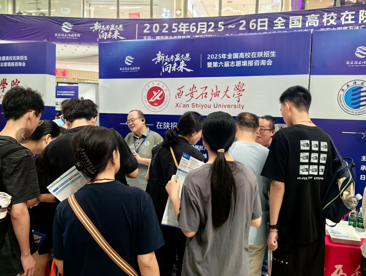6月26日-28日,學校還組織參加了第十三屆陜西教育博覽會暨招生咨詢會。展覽期間,省委教育工委書記、省教育廳廳長王樹聲、副廳長吳振磊等領導在校長王進富、副校長張君濤的陪同下蒞臨我校展位視察指導工作。宣傳部、教務處、科研處、研究生院、馬克思主義學院、各院(系)專家教授及招生志愿者參加了本次博覽會暨招生咨詢會。本屆博覽會以“AI賦能教育發(fā)展,推動教育強省建設”為主題。學校在會展中心1號館設立展廳,以展板、視頻、實物等方式全面呈現(xiàn)學校發(fā)展歷程、辦學特色、平臺實力、培養(yǎng)模式等,吸引了眾多考生、家長前來觀看咨詢。各院(系)骨干教師、志愿者組成的招生咨詢團隊現(xiàn)場為考生和家長提供權(quán)威解讀,對考生志愿填報進行詳細指導。