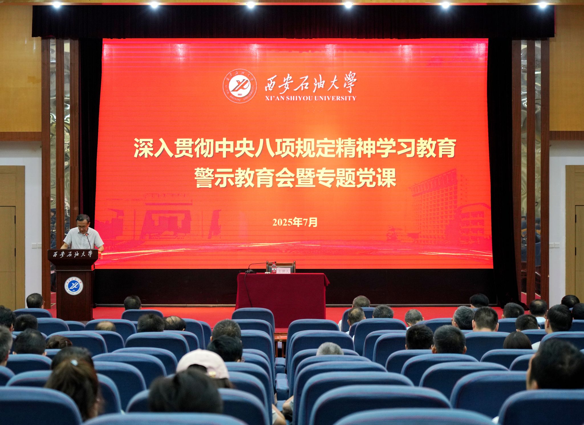 7月9日,學(xué)校召開(kāi)深入貫徹中央八項(xiàng)規(guī)定精神學(xué)習(xí)教育警示教育大會(huì)暨專題黨課,學(xué)習(xí)習(xí)近平總書記關(guān)于加強(qiáng)黨的作風(fēng)建設(shè)的重要論述和中央、省委關(guān)于學(xué)習(xí)教育的最新安排部署,集中觀看警示教育片《鐵規(guī)矩硬杠杠》。校黨委書記常江講授專題黨課,校黨委副書記、紀(jì)委書記、監(jiān)察專員王輝強(qiáng)通報(bào)違反中央八項(xiàng)規(guī)定及其實(shí)施細(xì)則精神典型案例,校黨委副書記張木主持會(huì)議。