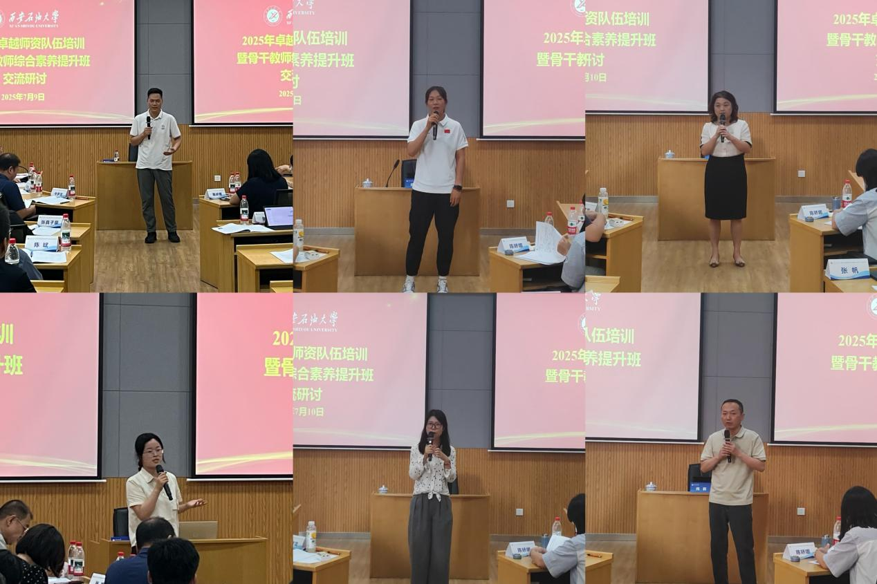 7月11日下午,培訓(xùn)班舉辦結(jié)業(yè)式。石油工程學(xué)院時(shí)宇、外國(guó)語(yǔ)學(xué)院馮娟、化學(xué)化工學(xué)院牛夢(mèng)龍、電子工程學(xué)院陳嬌娜、機(jī)械工程學(xué)院王天琦、馬克思主義學(xué)院王恩6名參訓(xùn)教師作交流發(fā)言,分享了學(xué)習(xí)心得體會(huì),表示通過(guò)研修開(kāi)拓了學(xué)術(shù)視野,深化了思想認(rèn)識(shí),提升了綜合素養(yǎng),今后將學(xué)以致用,行勝于言,把學(xué)習(xí)成果運(yùn)用到實(shí)際工作中,為學(xué)校各項(xiàng)事業(yè)發(fā)展貢獻(xiàn)力量。