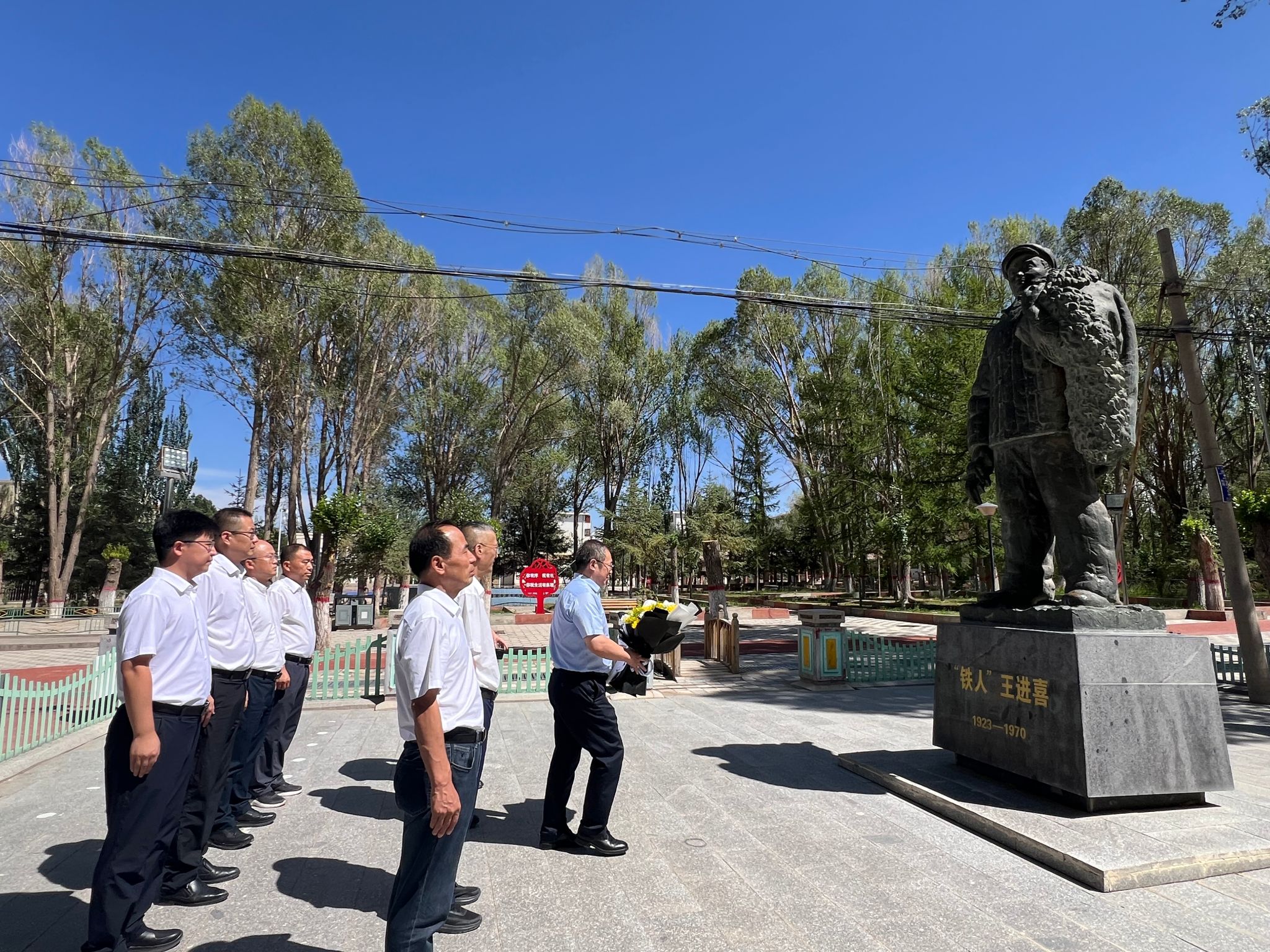 在玉門老城區(qū),常江一行專門拜祭了新中國西北石油工業(yè)奠基人、西北石油工業(yè)學校創(chuàng)建者之一的鄒明革命先輩,代表學校敬獻了鮮花,向新中國西北石油工業(yè)奠基人、西北石油工業(yè)學校創(chuàng)建者之一的孫健初紀念碑和鐵人王進喜銅像敬獻了鮮花。玉門油田黨委委員、總地質(zhì)師唐海忠,生產(chǎn)保障服務中心執(zhí)行董事、黨委書記王美強陪同參加當天活動。
