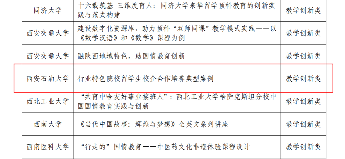 近年來,我校高度重視國(guó)際化人才培養(yǎng)工作,先后與中塔天然氣管道公司、中吉天然氣管道公司等聯(lián)合開展人才培養(yǎng)項(xiàng)目,形成了較為成熟的校企聯(lián)合培養(yǎng)模式與協(xié)同育人機(jī)制。此次入選典型案例,充分體現(xiàn)了我校在來華留學(xué)教育領(lǐng)域的創(chuàng)新成果和示范價(jià)值。未來,我校將以本次典型案例入選為契機(jī),持續(xù)深化來華留學(xué)教學(xué)改革與研究,總結(jié)來華留學(xué)教育經(jīng)驗(yàn),進(jìn)一步提升來華留學(xué)教育質(zhì)量。