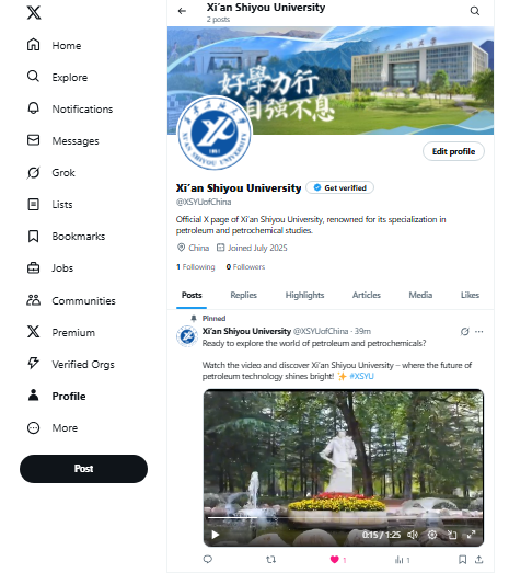 西安石油大學(xué)X平臺(tái)賬號(hào):https://x.com/XSYUofChina