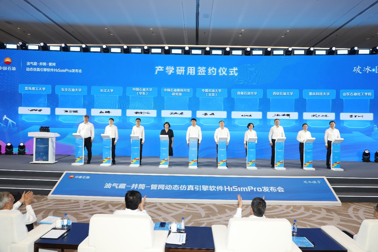 7月29日,中國首套地下地面一體化(油氣藏-井筒-管網(wǎng))動態(tài)仿真引擎軟件HiSimPro在北京發(fā)布。中國石油集團公司總會計師周松及相關(guān)石油企業(yè)領(lǐng)導(dǎo)出席會議,我校副校長張榮軍應(yīng)邀出席發(fā)布會。