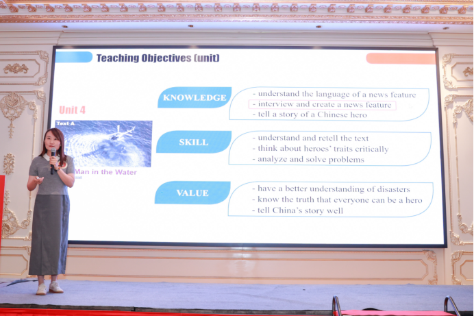 在比賽中,苗旸、拓葳、鐘澤波、余琴、李芳蕾團(tuán)隊以“講好中國故事,促進(jìn)文明互鑒”為核心,深入挖掘教材內(nèi)涵,巧妙融合數(shù)字化、智能化教學(xué)手段,構(gòu)建了“以學(xué)生為中心、以能力為導(dǎo)向”的創(chuàng)新教學(xué)模式。團(tuán)隊通過案例教學(xué)、情景模擬、跨文化對比等多元方法,充分展現(xiàn)了我校在智慧教育領(lǐng)域的探索成果。