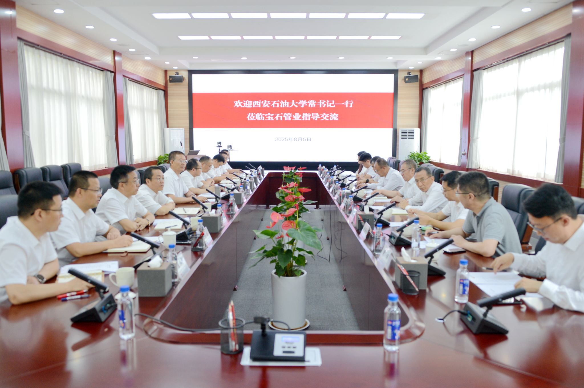 來進和對常江一行到訪表示熱烈歡迎并感謝學校長期以來在事業(yè)發(fā)展和人才輸送等方面對寶石管業(yè)的支持,并對學校近年來取得的重大成績表示祝賀。他簡要介紹了寶石管業(yè)的發(fā)展歷程,著重闡述了企業(yè)下一步在科技協(xié)同創(chuàng)新、新質(zhì)生產(chǎn)力發(fā)展、靶向人才培養(yǎng)、產(chǎn)學研平臺建設、黨建和企業(yè)文化建設上的合作需求。他表示,雙方將以此次交流為契機,建立更加全面、更加緊密、源遠流長的校企合作關(guān)系。