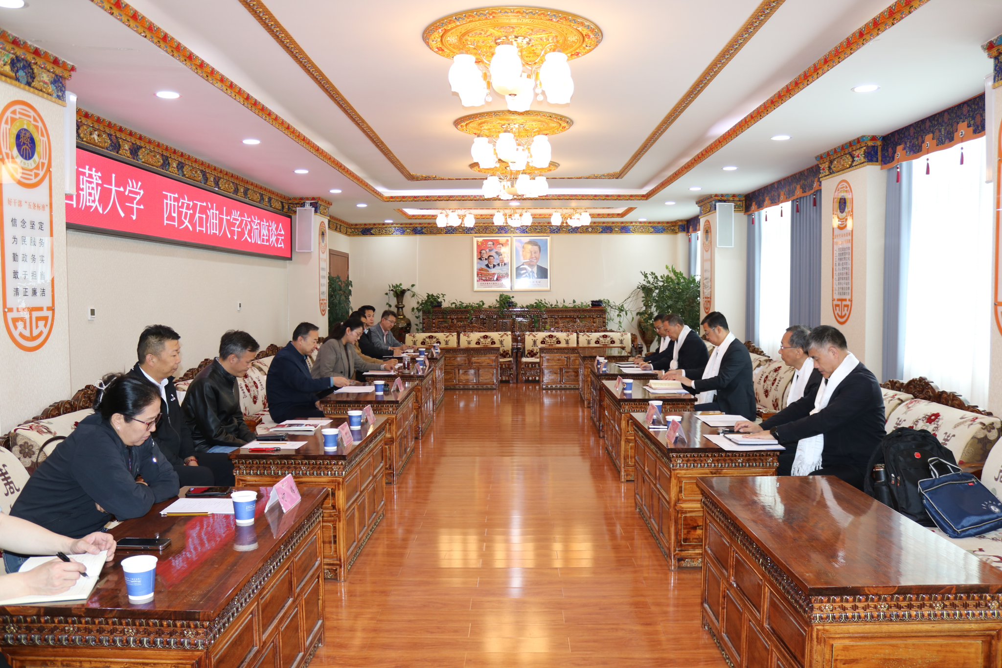 8月26日,王進(jìn)富一行與西藏大學(xué)黨委委員、副校長王斌禮及相關(guān)職能部門負(fù)責(zé)同志座談交流。王進(jìn)富表示,此次來訪是循著習(xí)近平總書記的足跡,踏著中央代表團(tuán)的步伐來藏調(diào)研考察交流,洽談合作,西藏大學(xué)作為西藏自治區(qū)高等教育的排頭兵,在服務(wù)地方經(jīng)濟(jì)社會(huì)發(fā)展中發(fā)揮著重要作用。西安石油大學(xué)愿與西藏大學(xué)攜手,充分發(fā)揮能源學(xué)科優(yōu)勢(shì),共同開展高原能源資源勘探開發(fā)、清潔能源利用、生態(tài)環(huán)境保護(hù)等領(lǐng)域的研究,同時(shí)在人才聯(lián)合培養(yǎng)、留學(xué)生教育、員工培訓(xùn)、干部掛職、社會(huì)服務(wù)等方面加強(qiáng)合作,為推動(dòng)西藏能源產(chǎn)業(yè)綠色轉(zhuǎn)型、服務(wù)國家能源安全戰(zhàn)略貢獻(xiàn)雙方力量,共同譜寫雪域高原高質(zhì)量發(fā)展新篇章。王斌禮對(duì)王進(jìn)富一行來訪表示熱烈歡迎,對(duì)學(xué)校給予的關(guān)心和支持表示感謝,并深情回顧了西藏自治區(qū)在以習(xí)近平同志為核心的黨中央堅(jiān)強(qiáng)領(lǐng)導(dǎo)下,歷史性成就閃耀雪域,民族團(tuán)結(jié)進(jìn)步事業(yè)煥發(fā)新生,人民生活水平節(jié)節(jié)攀升,尤其強(qiáng)調(diào)能源基礎(chǔ)設(shè)施建設(shè)和綠色能源轉(zhuǎn)型對(duì)區(qū)域長治久安與高質(zhì)量發(fā)展起到的關(guān)鍵作用。希望雙方發(fā)揮特色優(yōu)勢(shì),聚焦高原羌塘盆地油區(qū)勘探開發(fā),構(gòu)建協(xié)同創(chuàng)新機(jī)制,深化產(chǎn)學(xué)研深度融合,加強(qiáng)人才聯(lián)合培養(yǎng),助力西藏自治區(qū)將資源稟賦轉(zhuǎn)化為高質(zhì)量發(fā)展動(dòng)能。