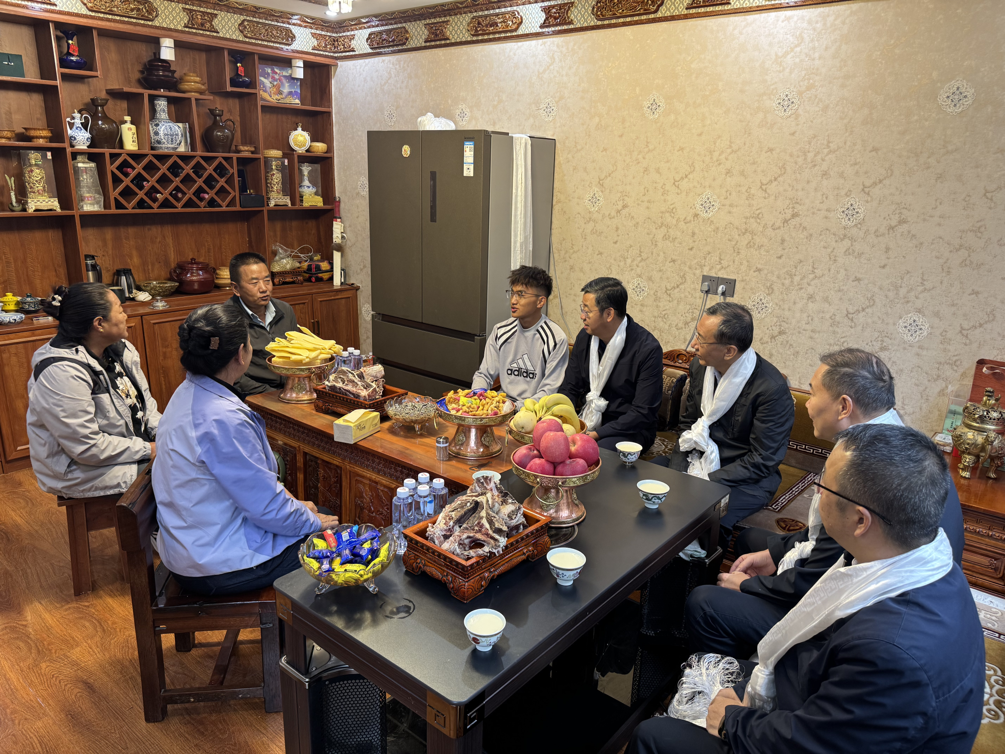 8月25日,王進(jìn)富一行專程來到拉薩市城關(guān)區(qū)我校經(jīng)濟(jì)管理學(xué)院商管2409班扎西次仁學(xué)生家中進(jìn)行家訪并促膝長談。王進(jìn)富對(duì)學(xué)生及家人表達(dá)了親切的慰問,深入了解了家庭生活狀況、工作情況和學(xué)生的未來職業(yè)規(guī)劃,傾聽學(xué)生在學(xué)習(xí)和生活中遇到的困難與需求,并向家長介紹了學(xué)生的學(xué)業(yè)情況以及學(xué)校的獎(jiǎng)助學(xué)金體系和就業(yè)幫扶措施,鼓勵(lì)扎西次仁堅(jiān)定理想信念、努力學(xué)習(xí)知識(shí),練就過硬本領(lǐng),回報(bào)家庭、建設(shè)家鄉(xiāng)、服務(wù)社會(huì),做民族團(tuán)結(jié)進(jìn)步的踐行者。扎西次仁家長談到,黨中央高度重視民族地區(qū)教育發(fā)展,持續(xù)加大惠民政策扶持力度,不僅讓我們民族地區(qū)家庭的生活越過越有盼頭,更給了孩子們通過知識(shí)改變命運(yùn)、實(shí)現(xiàn)人生價(jià)值的機(jī)會(huì)。同時(shí),也對(duì)學(xué)校專程跨越千里上門家訪、用心用情關(guān)懷培養(yǎng)學(xué)生表示衷心感謝,并表示會(huì)積極配合學(xué)校,家校協(xié)同,共同助力學(xué)生成長成才,回報(bào)社會(huì)。