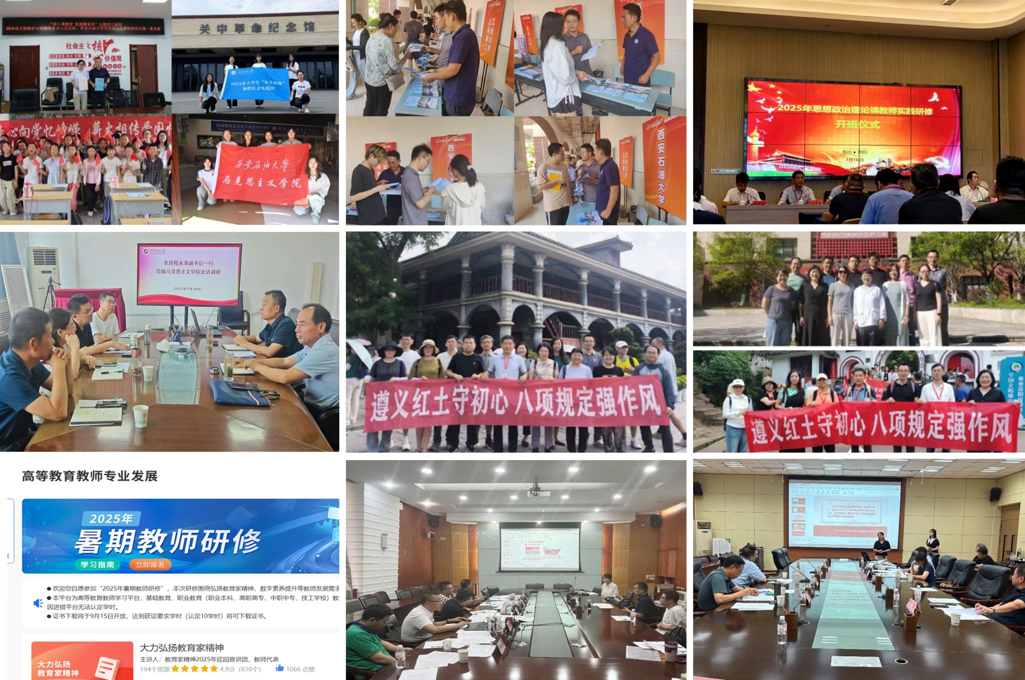 一是實踐育人強(qiáng)本領(lǐng)。組建6支實踐團(tuán)隊赴延安、咸陽、山西朔州等地開展“三下鄉(xiāng)”社會實踐活動;選派3名學(xué)生赴中國石油報社實習(xí),助力學(xué)生在實踐中成長。二是研招宣傳拓生源。組織教師赴上海參加全國研究生招生咨詢會,詳解學(xué)校優(yōu)勢與專業(yè)特色,精準(zhǔn)吸引優(yōu)質(zhì)生源,提升招生質(zhì)量。三是黨建工作提質(zhì)效。落實深入貫徹中央八項規(guī)定精神學(xué)習(xí)教育工作要求,完善問題臺賬并推進(jìn)整改;邀請校領(lǐng)導(dǎo)調(diào)研指導(dǎo),鞏固學(xué)習(xí)成果。四是研修培訓(xùn)促提升。組織16名教師赴貴州參加思政課實踐研修;組織6名教工黨支部書記參加高?;鶎狱h組織示范班線上培訓(xùn),安排10名教師參與“人工智能賦能人才培養(yǎng)”線上培訓(xùn)。五是以賽促教磨真功。組織開展四次思政課教師“大練兵”磨課活動;舉辦專家講評會,邀請楊云霞等10位知名專家現(xiàn)場指導(dǎo),助力教師提升教學(xué)水平。