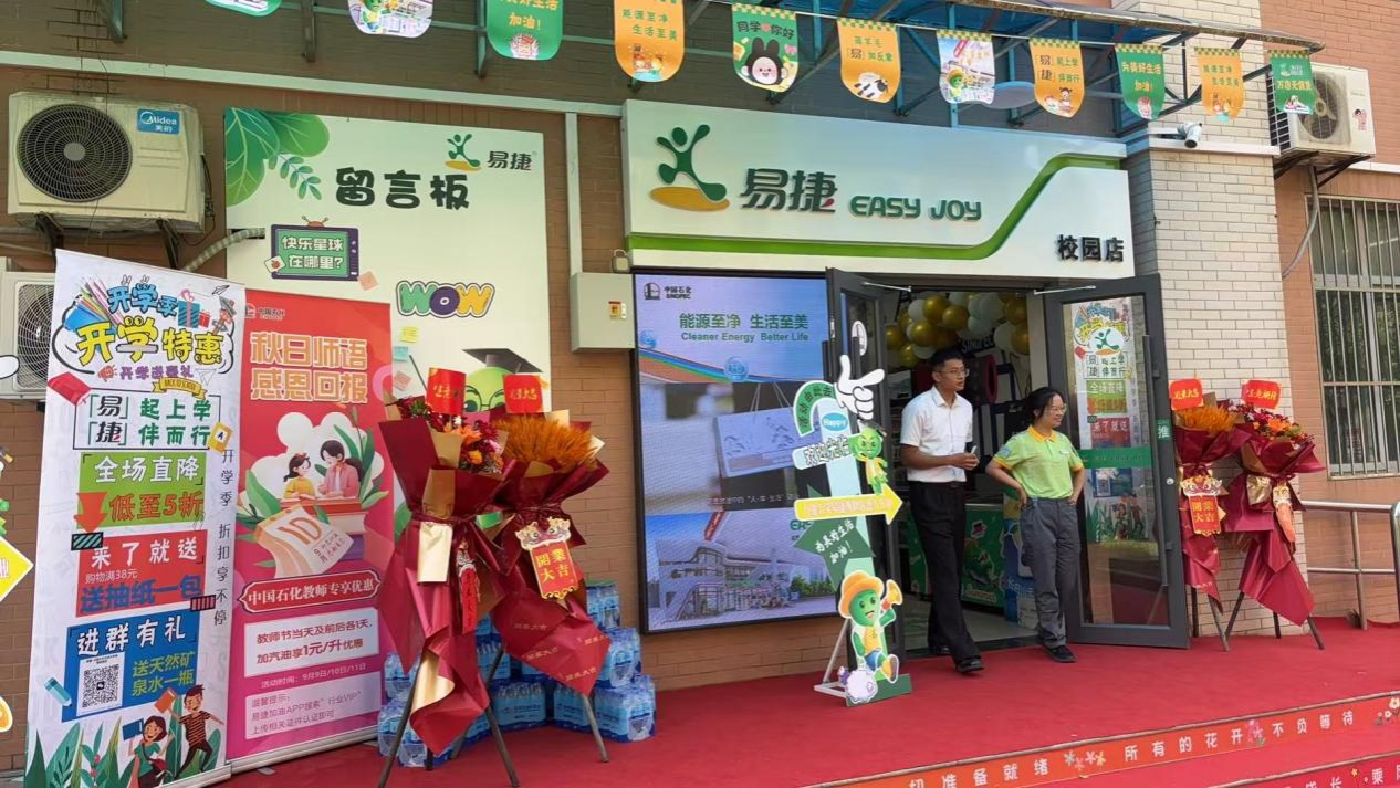 9月1日上午,中國石化易捷便利校園店開業(yè)儀式在我校鄠邑校區(qū)西區(qū)綜合樓舉行。校黨委副書記張木,中國石化陜西石油分公司總經(jīng)理、黨委副書記戴盡良出席儀式。中國石化陜西石油分公司副總經(jīng)濟師、黨委組織部(黨委統(tǒng)戰(zhàn)部)部長、人力資源部經(jīng)理韓光輝,總經(jīng)理辦公室主任、政工部主任王琦,零售中心經(jīng)理、非油品中心經(jīng)理、陜西易捷分公司總經(jīng)理張丹,天然氣業(yè)務(wù)部、發(fā)展規(guī)劃部經(jīng)理劉曉光,西安石油分公司黨委書記、總經(jīng)理楊竣捷,西安石油分公司副總經(jīng)理、紀委書記侯代宇,以及我校學生工作部、團委、校友工作與合作交流處、后勤處、資產(chǎn)經(jīng)營公司等部門主要負責人參加儀式。