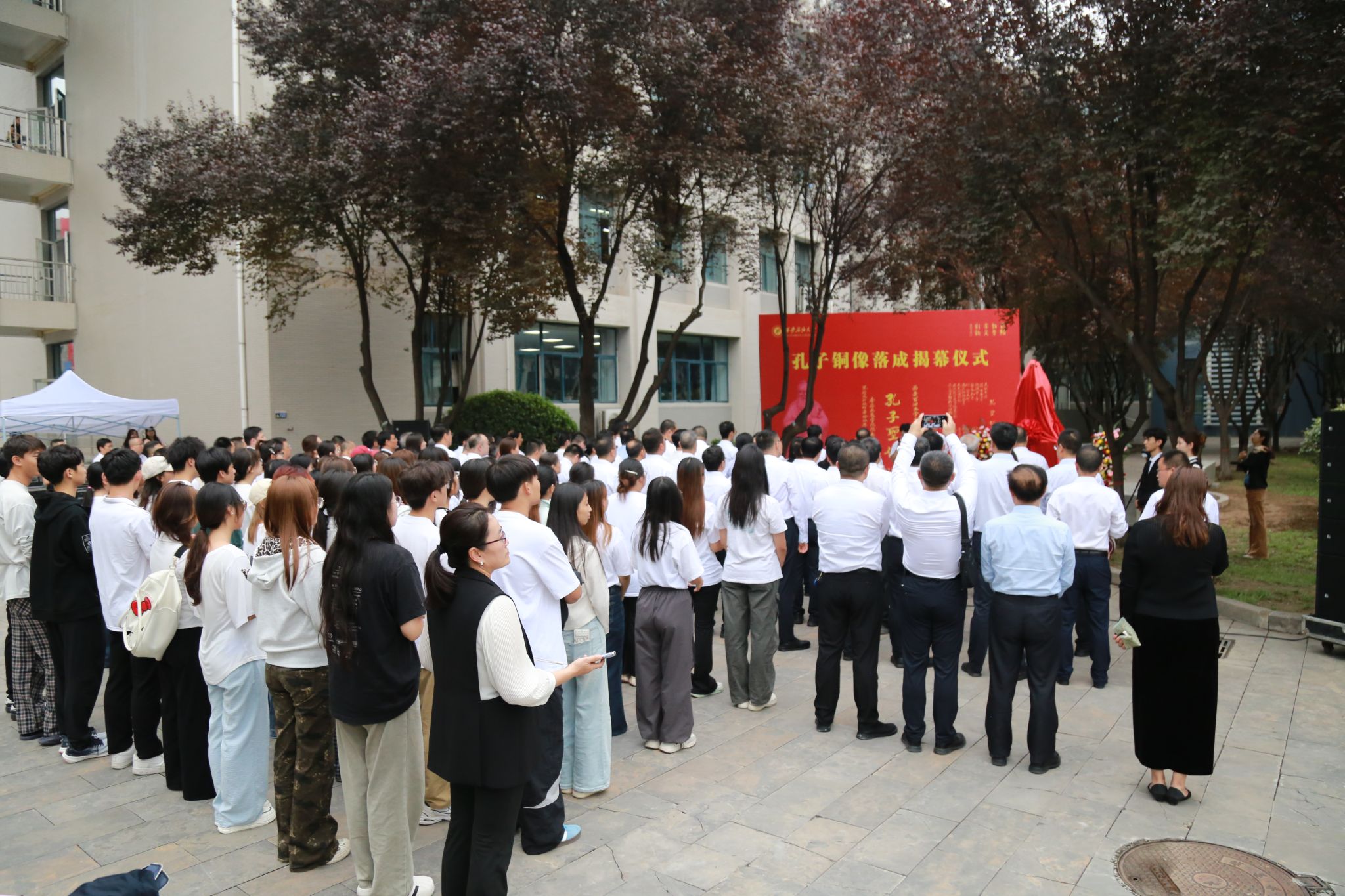 9月10日下午,學(xué)校在鄠邑校區(qū)朝源廣場舉行孔子銅像揭幕儀式。校長王進富、校黨委副書記張木、副校長張君濤,以及教師節(jié)受表彰教師代表、在鄠邑校區(qū)工作的正處級干部與學(xué)生代表共計150余人出席了本次活動。儀式由校黨委副書記程永清主持。