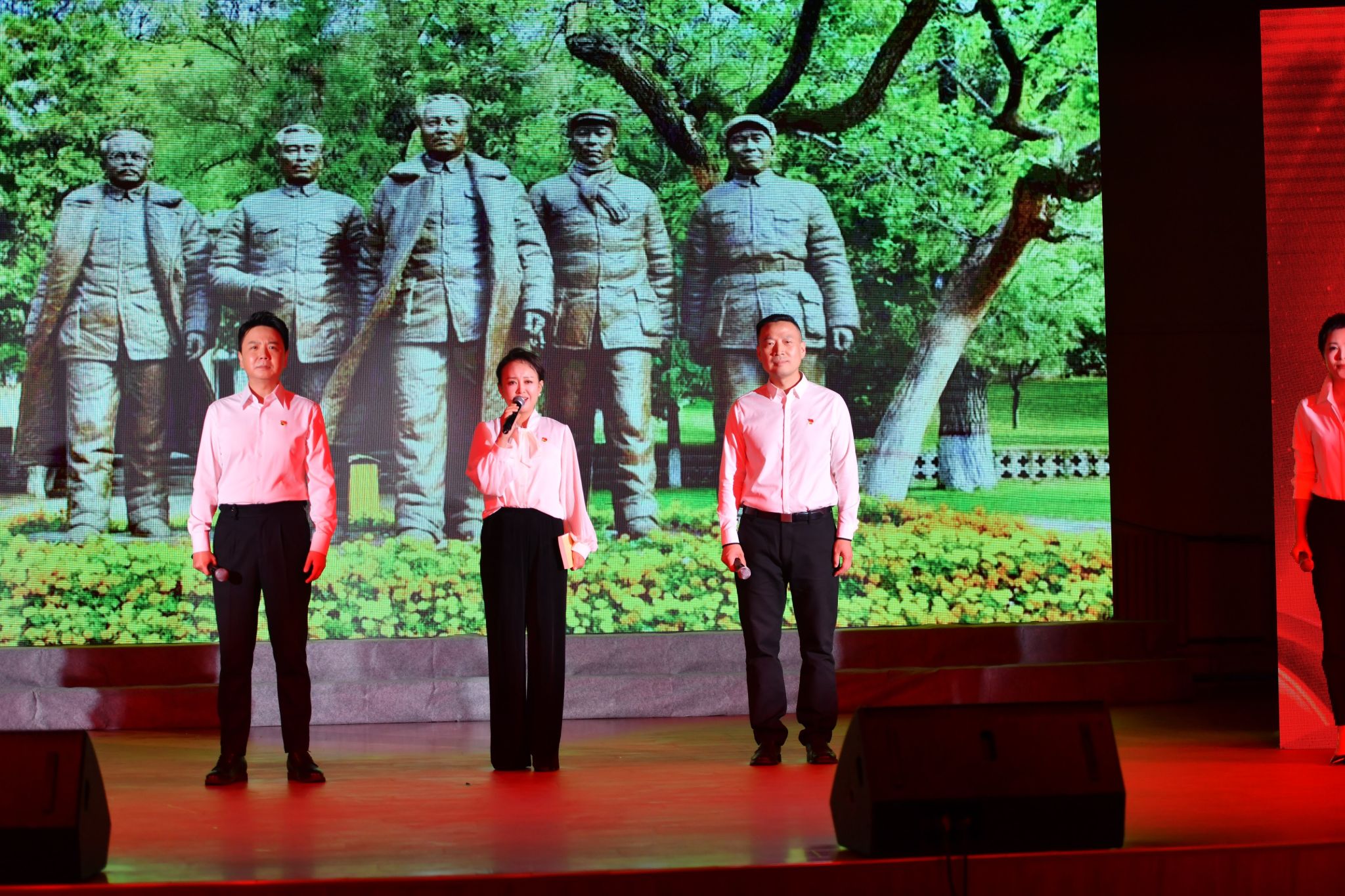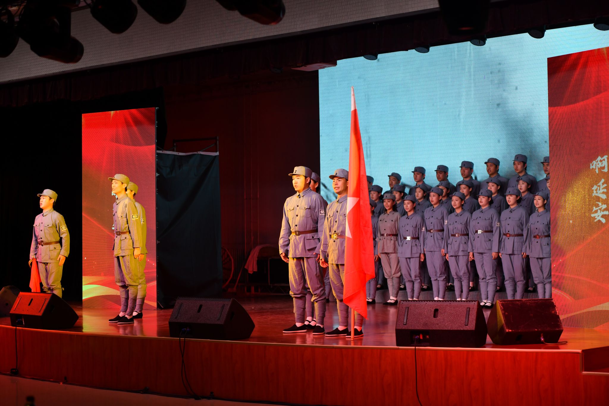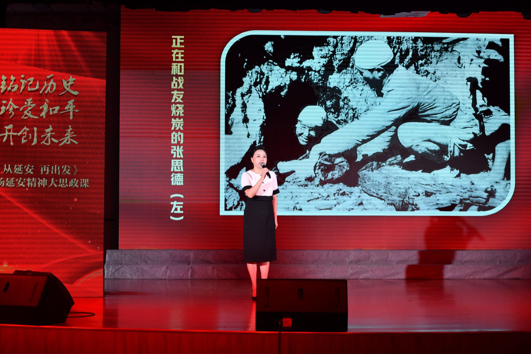 活動分為序幕、信念之路、思想之炬、為民之心、奮進之力四大篇章、尾聲,包括《延安頌》《延安窯洞有馬列主義》《全心全意為人民服務(wù)的楷?!贰额I(lǐng)航》等8個節(jié)目,并由4位知名專家分別圍繞“為什么中國的希望在延安”“為什么延安窯洞有馬列主義”“為什么要將為人民服務(wù)作為黨的根本宗旨寫入《中國共產(chǎn)黨章程》”“為什么習(xí)近平總書記囑托無論將來物質(zhì)生活多么豐富,自力更生艱苦奮斗的精神一定不能丟”等核心問題,進行深入淺出的理論闡釋,實現(xiàn)了文藝表達與思想教育的深度融合,活動現(xiàn)場莊重?zé)崃?,洋溢著濃厚的紅色氛圍。其中,我校音樂系教師李強、田立分別演繹了《領(lǐng)航》、《山丹丹開花紅艷艷》歌曲,我校合唱團以激昂的歌聲合唱了《延安頌》《領(lǐng)航》等曲目,傳遞出新時代青年繼承革命傳統(tǒng)、勇?lián)姑膱远ㄐ拍睢?/p>