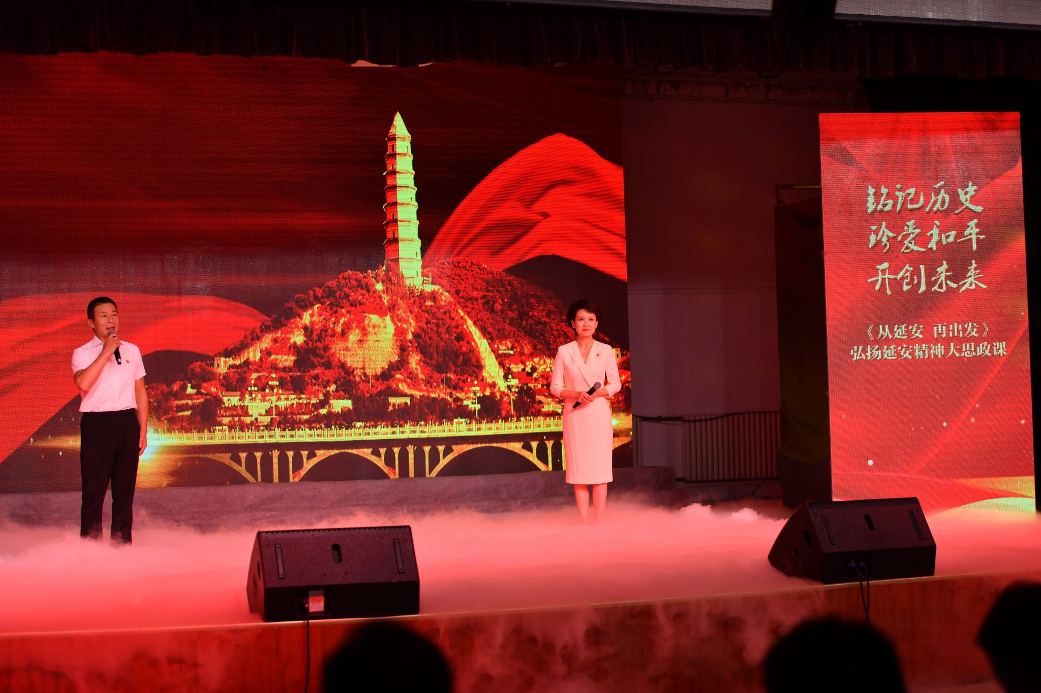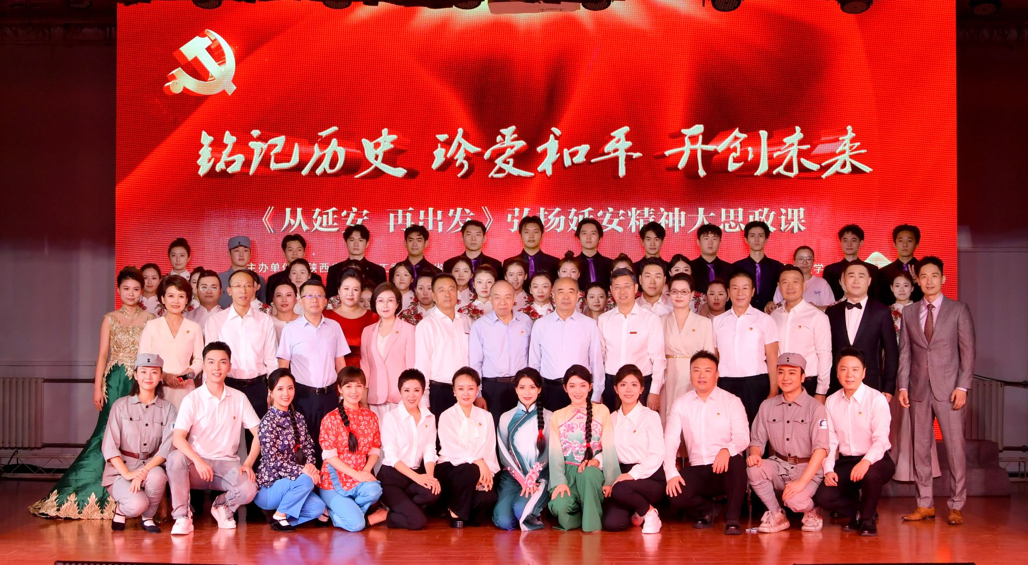 本次“大思政課”以“銘記歷史 珍愛和平 開創(chuàng)未來”為主題,突破單純的講授和文藝表演,通過“文藝+黨課”的創(chuàng)新形式,以情景再現(xiàn)、時空對話等藝術(shù)手法,生動展現(xiàn)了中國共產(chǎn)黨在延安十三年的光輝歷程,既具有理論價值,又讓人耳目一新,具有創(chuàng)新性、思想性、系統(tǒng)性、文藝性、參與性,主創(chuàng)團隊由省延安精神研究會專家團隊和陜西廣電融媒集團(臺)的播委會、都市青春頻道團隊共同組成。