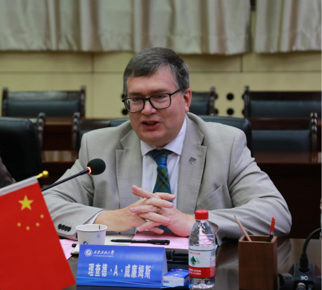 理查德?A?威廉姆斯對我校的熱情接待表示感謝,并簡要介紹了赫瑞-瓦特大學(xué)的學(xué)科特色、國際校區(qū)布局及全球合作成果。他表示,推進(jìn)跨文化教育合作、培育應(yīng)對全球挑戰(zhàn)的復(fù)合型人才是兩校的共同追求,赫瑞-瓦特大學(xué)高度重視與學(xué)校的合作。他強(qiáng)調(diào),愿與學(xué)校共同細(xì)化3+1項(xiàng)目執(zhí)行方案,推動(dòng)項(xiàng)目早日落成,并期待雙方在能源、人工智能、基礎(chǔ)設(shè)施建設(shè)等領(lǐng)域加強(qiáng)跨學(xué)科科研合作,擴(kuò)大師生互訪規(guī)模等方面開展實(shí)質(zhì)性合作。