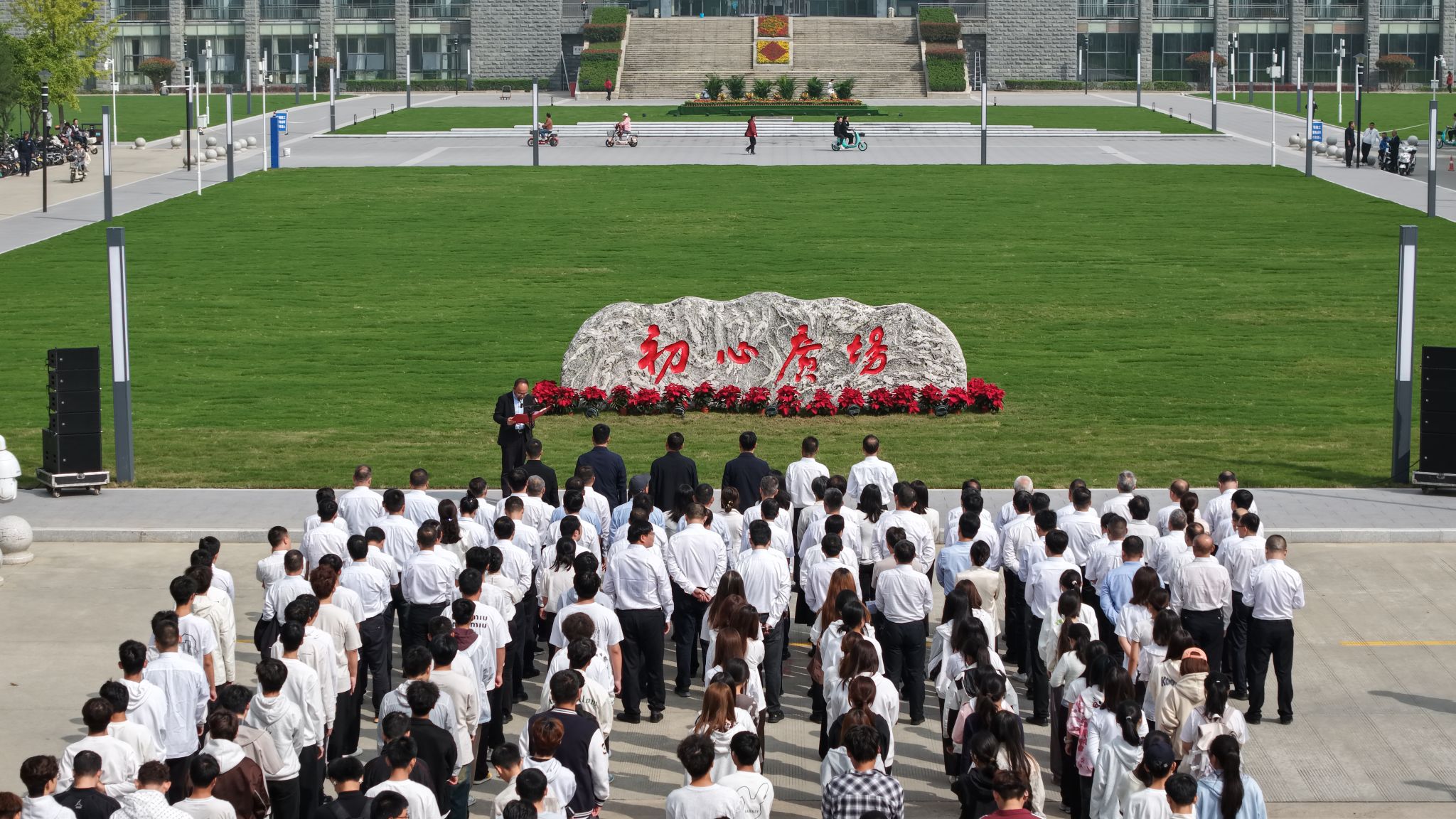 趙健在總結(jié)中希望全體師生真正將廣場所承載的“初心”內(nèi)涵內(nèi)化于心、外化于行,將其轉(zhuǎn)化為砥礪前行、奮發(fā)有為的強大動力。他強調(diào),學(xué)校將以初心廣場的揭幕為契機,進一步加強校園文化建設(shè),不斷提升辦學(xué)質(zhì)量和育人水平,為培養(yǎng)擔(dān)當(dāng)民族復(fù)興大任的時代新人作出更大貢獻。