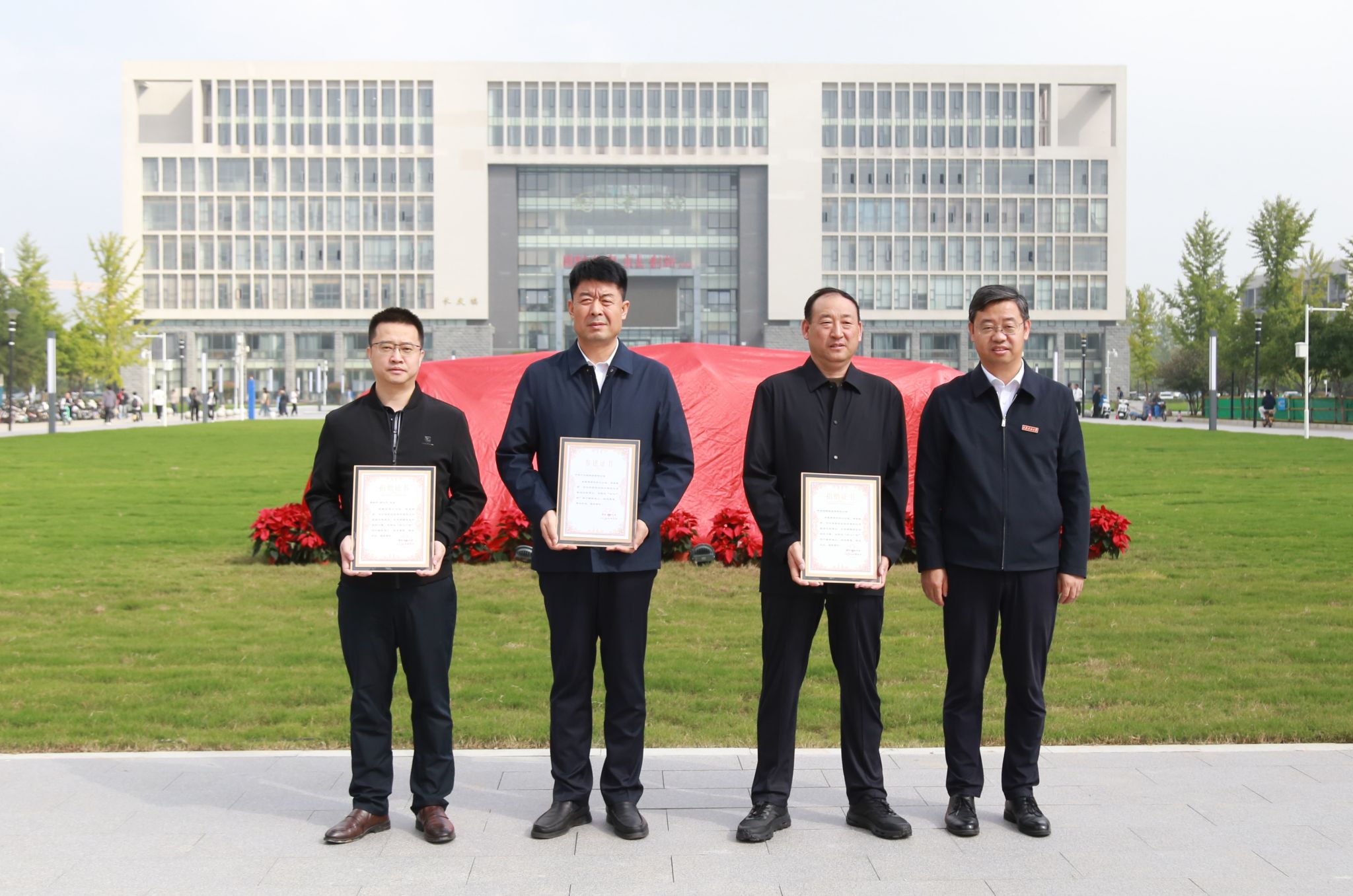 9月25日上午,學(xué)校在鄠邑校區(qū)圖書館南側(cè)舉行初心廣場揭幕儀式。楊小平先生個人代表曹青,中鐵十五局集團有限公司西北區(qū)域總部黨委副書記、陜寧指揮部指揮長田勝利,陜西渤瞬新能源有限公司董事長蘭喜茗等捐(參)建單位代表,我校校長王進富、校黨委副書記程永清、副校長張君濤出席儀式。在鄠邑校區(qū)工作的處級干部及學(xué)生代表200余人參加活動。儀式由副校長趙健主持。