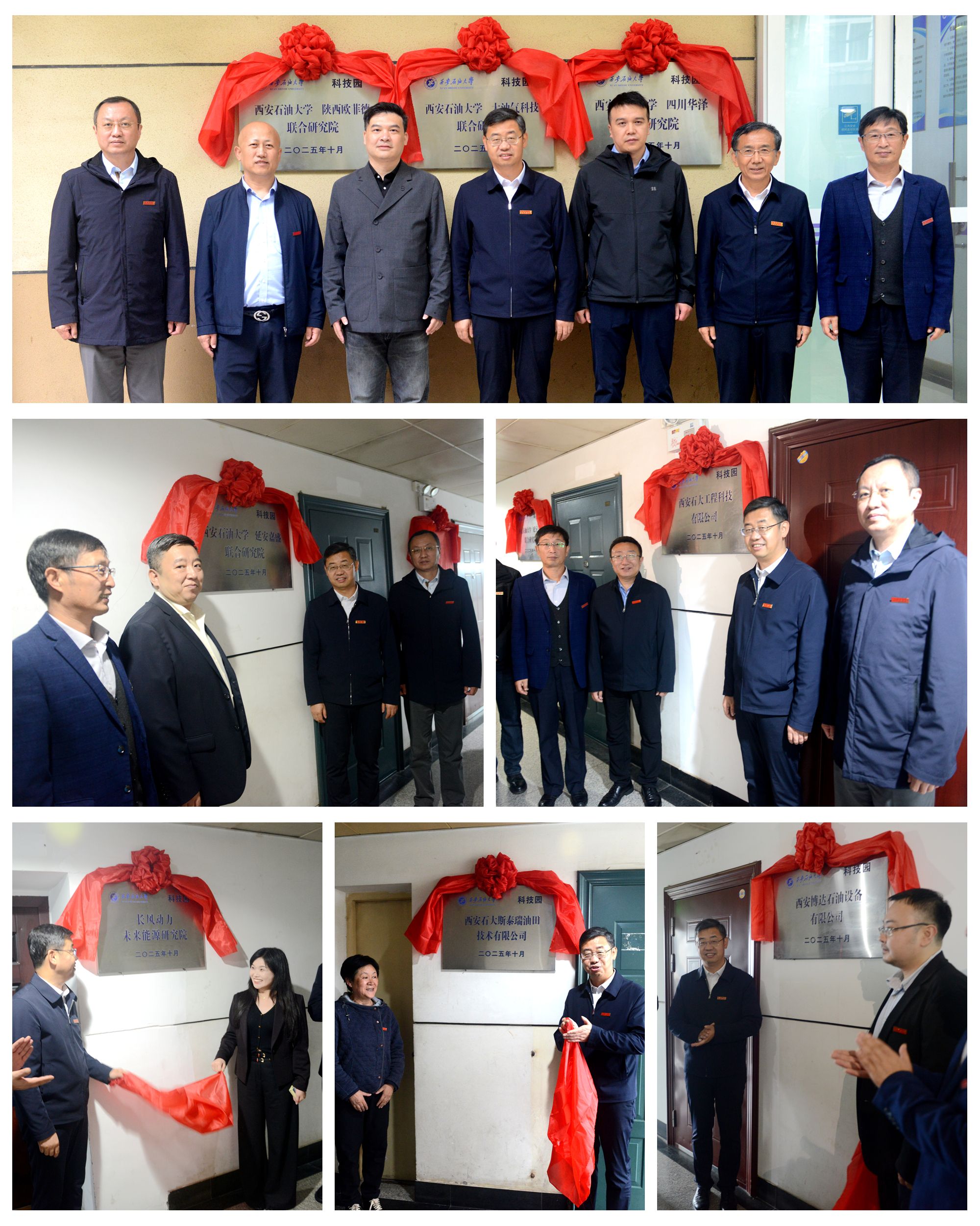 儀式的最后一個環(huán)節(jié),大學(xué)科技園揭牌儀式在東方石油樓舉行,王進富、蘇文甫、張榮軍共同為“西安石油大學(xué)科技園”揭牌,并與各企業(yè)負責人一起為各入駐單位揭牌。