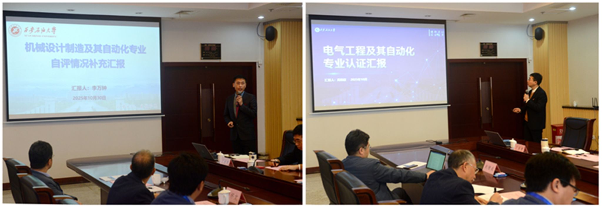 機(jī)械設(shè)計(jì)制造及其自動(dòng)化、電氣工程及其自動(dòng)化專業(yè)負(fù)責(zé)人分別對(duì)專業(yè)的自評(píng)情況作了補(bǔ)充匯報(bào)。