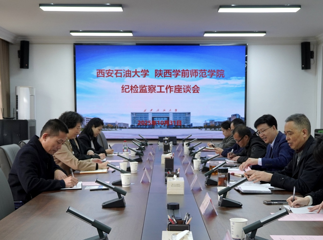 趙瓊對我校的熱情接待表示感謝,并對陜西學(xué)前師范學(xué)院的基本情況和紀(jì)檢監(jiān)察工作有關(guān)情況作了簡要介紹。她表示,西安石油大學(xué)紀(jì)檢監(jiān)察工作成效顯著、富有特色。希望兩校紀(jì)檢監(jiān)察機(jī)構(gòu)進(jìn)一步加強溝通協(xié)作、拓寬視野、創(chuàng)新思路,不斷提升紀(jì)檢監(jiān)察工作質(zhì)效。