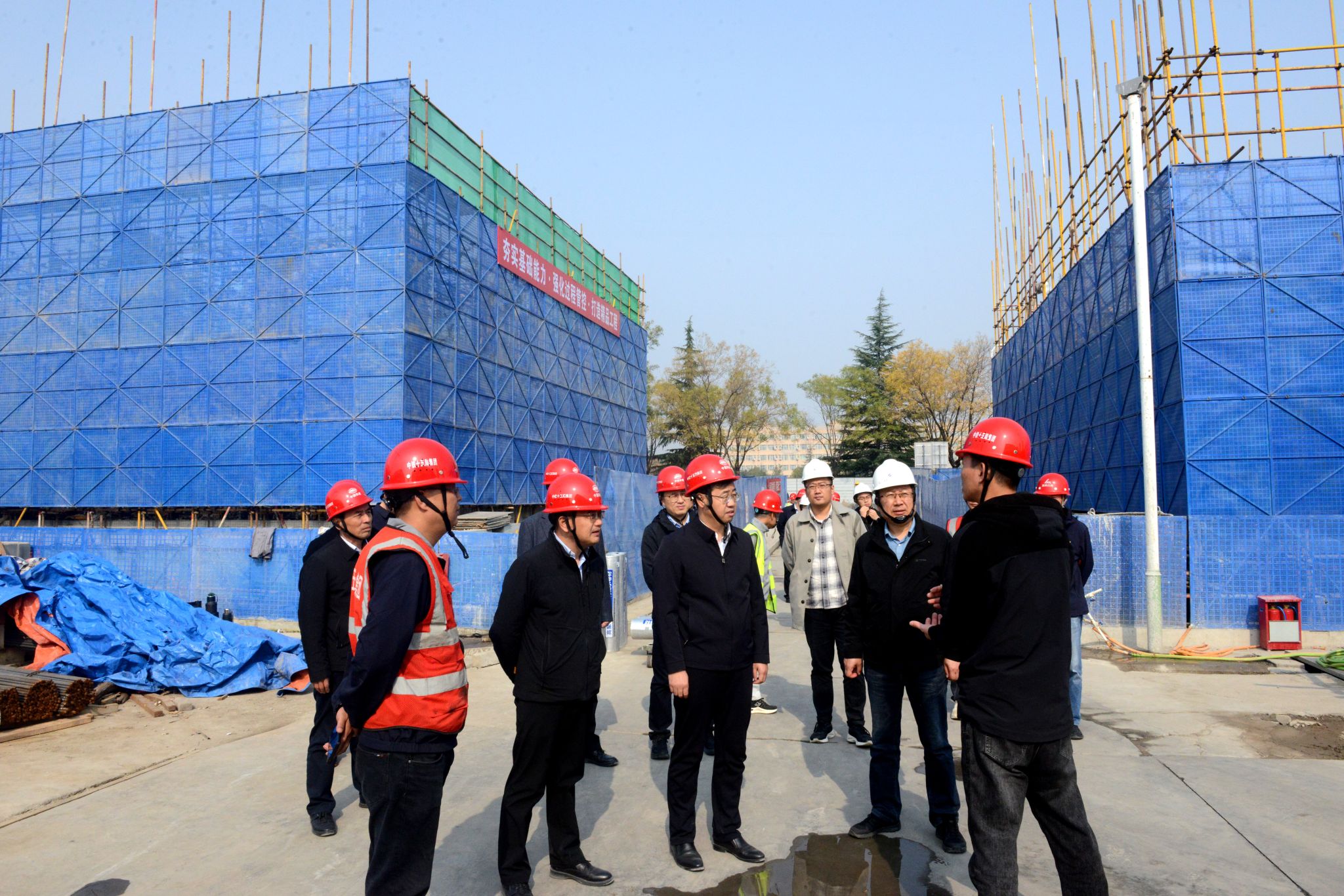 王進(jìn)富一行先后調(diào)研綠色低碳能源綜合實(shí)驗(yàn)(實(shí)訓(xùn))中心,圖書(shū)館6-8層,21#、22#學(xué)生宿舍樓和綜合服務(wù)一條街等項(xiàng)目施工(修繕)現(xiàn)場(chǎng),詳細(xì)了解各項(xiàng)目進(jìn)展情況,聽(tīng)取施工單位負(fù)責(zé)人介紹,并召開(kāi)現(xiàn)場(chǎng)辦公會(huì),協(xié)調(diào)解決項(xiàng)目推進(jìn)問(wèn)題。