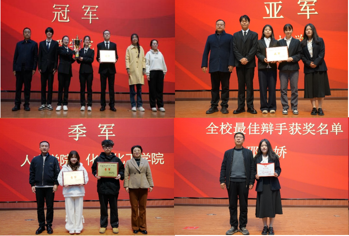 經(jīng)過激烈角逐,理學(xué)院代表隊(duì)?wèi){借出色的團(tuán)隊(duì)配合與辯論技巧奪得冠軍,計(jì)算機(jī)學(xué)院代表隊(duì)獲得亞軍。大會(huì)為獲獎(jiǎng)隊(duì)伍及優(yōu)秀辯手舉行了頒獎(jiǎng)儀式。