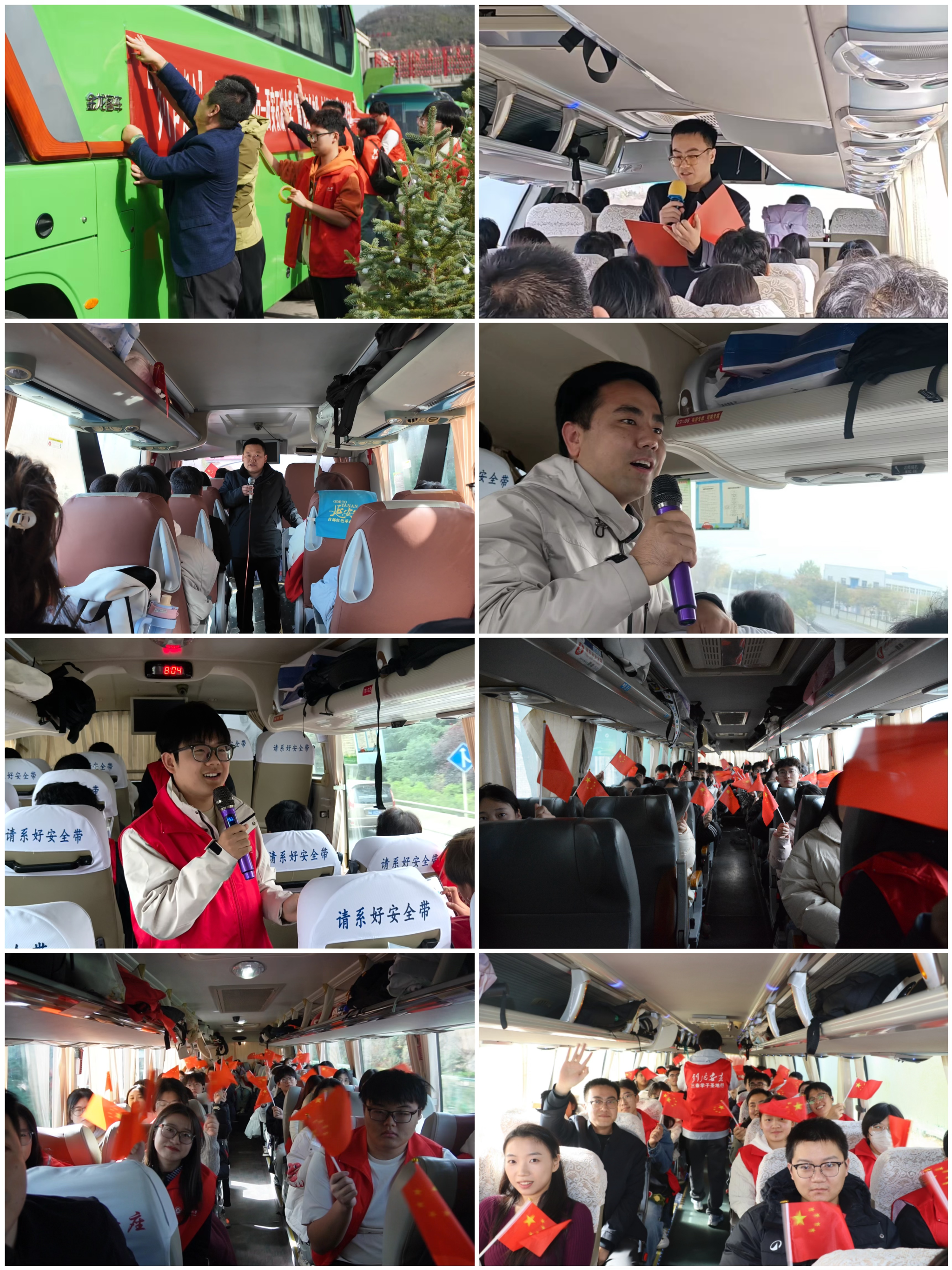 11月8日上午,實(shí)踐團(tuán)在鄠邑校區(qū)集結(jié)出發(fā)。車程中,師生們分享自身對(duì)“延安精神”的理解感悟、開展紅歌傳唱活動(dòng),提前進(jìn)行“理論預(yù)熱”的同時(shí),更讓遙遠(yuǎn)的路途變得鮮活有趣。