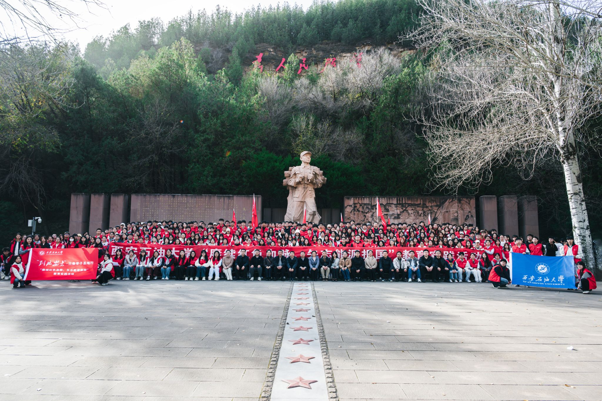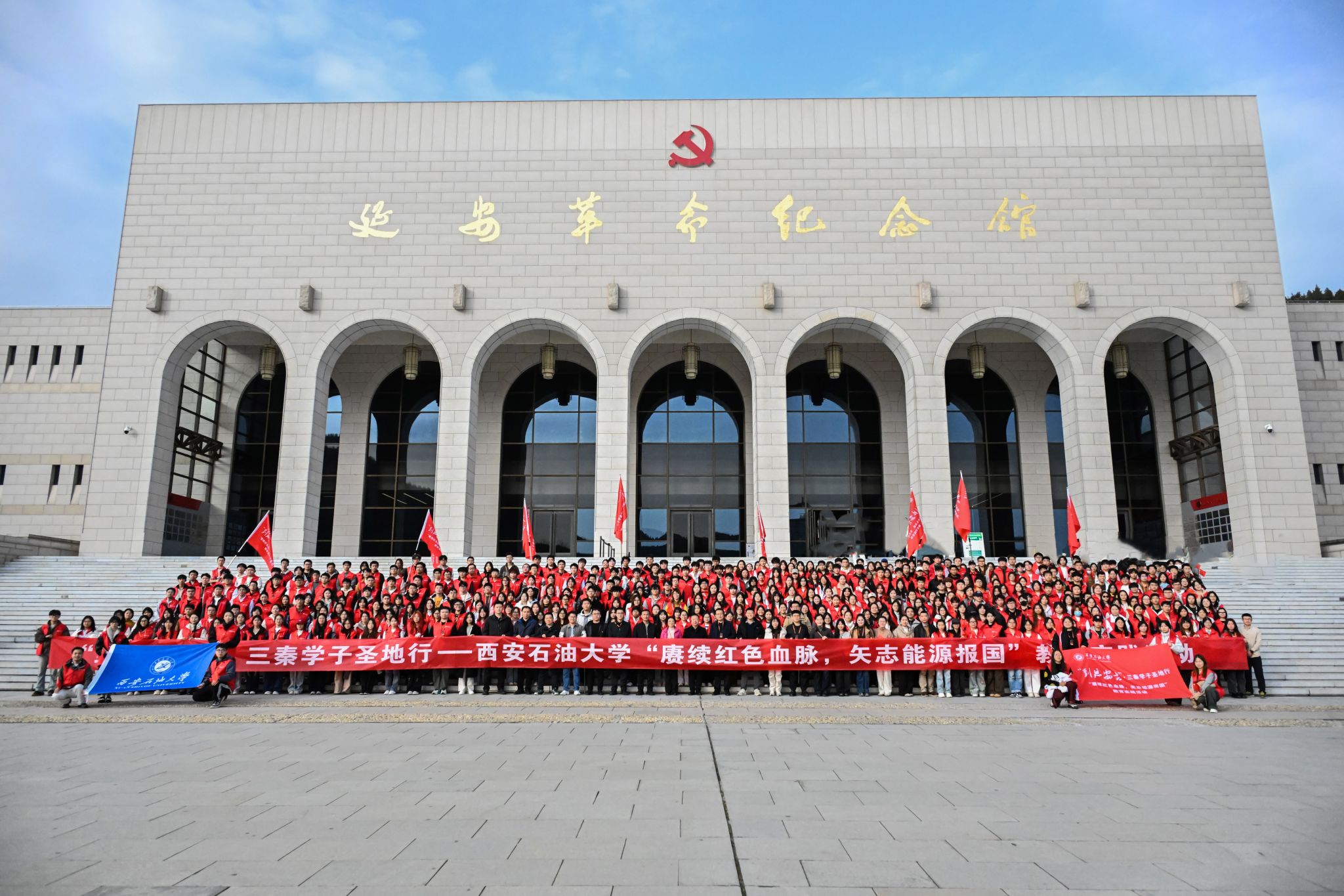 延安精神是我們黨的寶貴精神財(cái)富,36年來,學(xué)校始終堅(jiān)持組織師生走進(jìn)延安革命舊址、深入油田生產(chǎn)一線,教育引導(dǎo)學(xué)生在革命舊址悟初心、油田一線長本領(lǐng),這既是我?!按笏颊n”實(shí)踐育人的重要載體,也是我校堅(jiān)持石油精神辦學(xué)、鐵人精神育人、延安精神鑄魂理念的最好體現(xiàn),更是引導(dǎo)學(xué)生堅(jiān)定理想信念、厚植家國情懷的關(guān)鍵舉措。根據(jù)陜西省委教育工委《關(guān)于組織開展“到延安去”·三秦學(xué)子圣地行活動(dòng)的通知》要求,11月8日、9日,副校長種宇宏,黨委組織部、黨委學(xué)生工作部、校團(tuán)委、繼續(xù)教育學(xué)院等單位負(fù)責(zé)人,各院(系)學(xué)生工作負(fù)責(zé)人、團(tuán)委(團(tuán)總支)書記代表,學(xué)生黨支部書記及預(yù)備黨員代表,第十八期校級(jí)青年馬克思主義者干部培訓(xùn)班優(yōu)秀學(xué)員代表,團(tuán)學(xué)骨干代表,2025級(jí)班級(jí)團(tuán)支部書記代表等500余名師生赴延安開展為期兩天的教育實(shí)踐活動(dòng),走進(jìn)紅色熱土、沉浸式感悟延安精神內(nèi)涵,現(xiàn)場接受石油精神教育,學(xué)思踐悟中堅(jiān)定理想信念、在奮發(fā)有為中踐行初心使命。