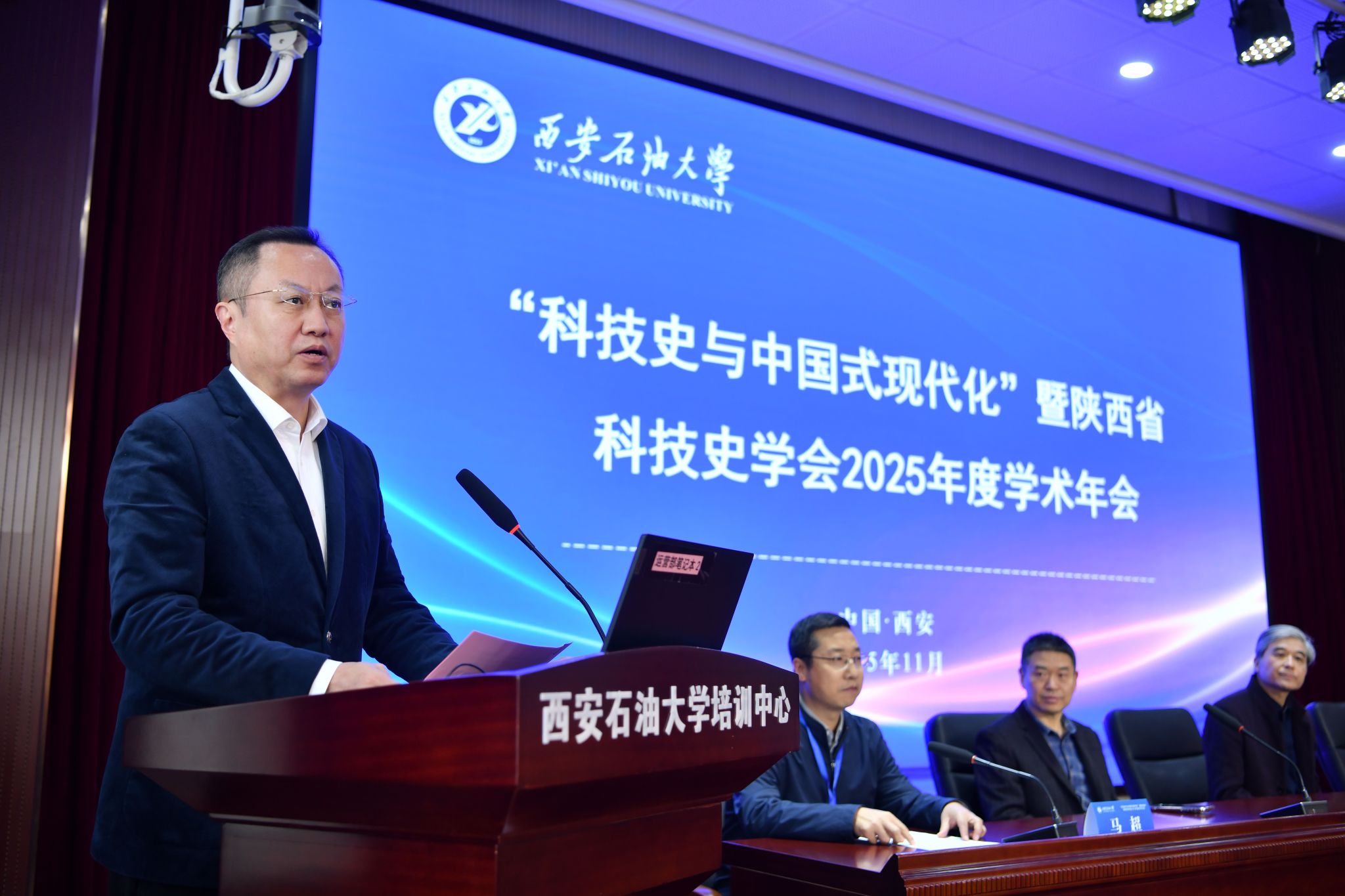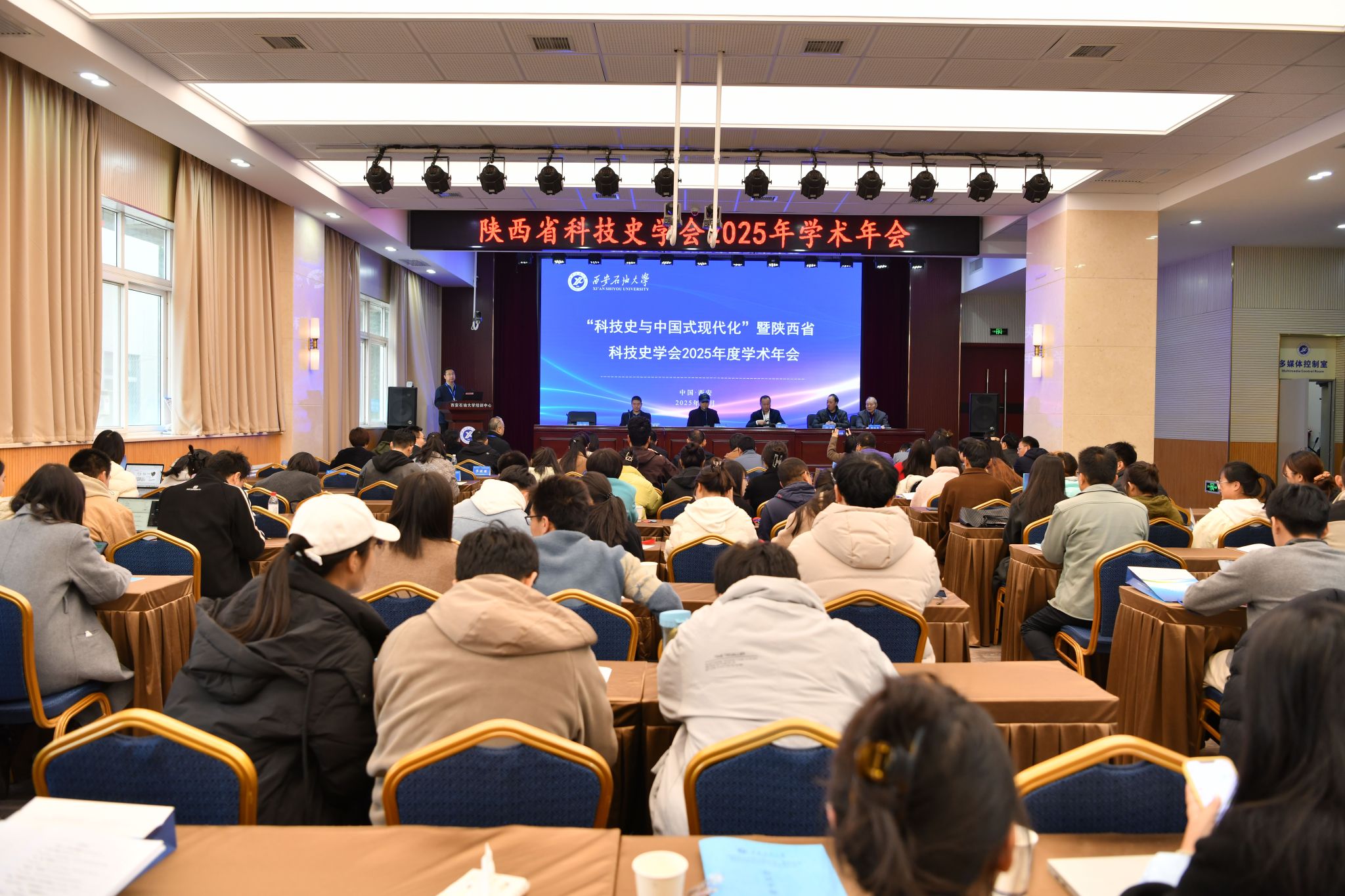 科技薪火,永續(xù)傳承;創(chuàng)新驅(qū)動,引領(lǐng)未來。從中國古代的四大發(fā)明到以人工智能、量子計(jì)算為代表的第四次工業(yè)革命,科技史承載了人類思想與文明的演進(jìn)脈絡(luò),推動科技創(chuàng)新浪潮奔涌向前。11月16日,恰逢陜西省科技史學(xué)會成立40周年之際,由陜西省科技史學(xué)會主辦,我校檔案館承辦,西北大學(xué)科學(xué)史高等研究院和我校科研處、理學(xué)院共同協(xié)辦的“科技史與中國式現(xiàn)代化”暨陜西省科技史學(xué)會2025年度學(xué)術(shù)年會在我校明德校區(qū)開幕。