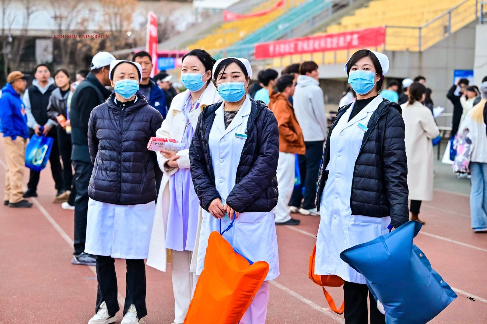 為保障活動安全進(jìn)行,所有參賽者均提前簽署了《健康安全承諾書》,承諾遵守賽事規(guī)則,服從工作人員安排。醫(yī)療、安保和補(bǔ)給站志愿者各司其職,為選手提供全方位的保障服務(wù)。校醫(yī)院全程待命,確保能夠及時(shí)處理突發(fā)情況。