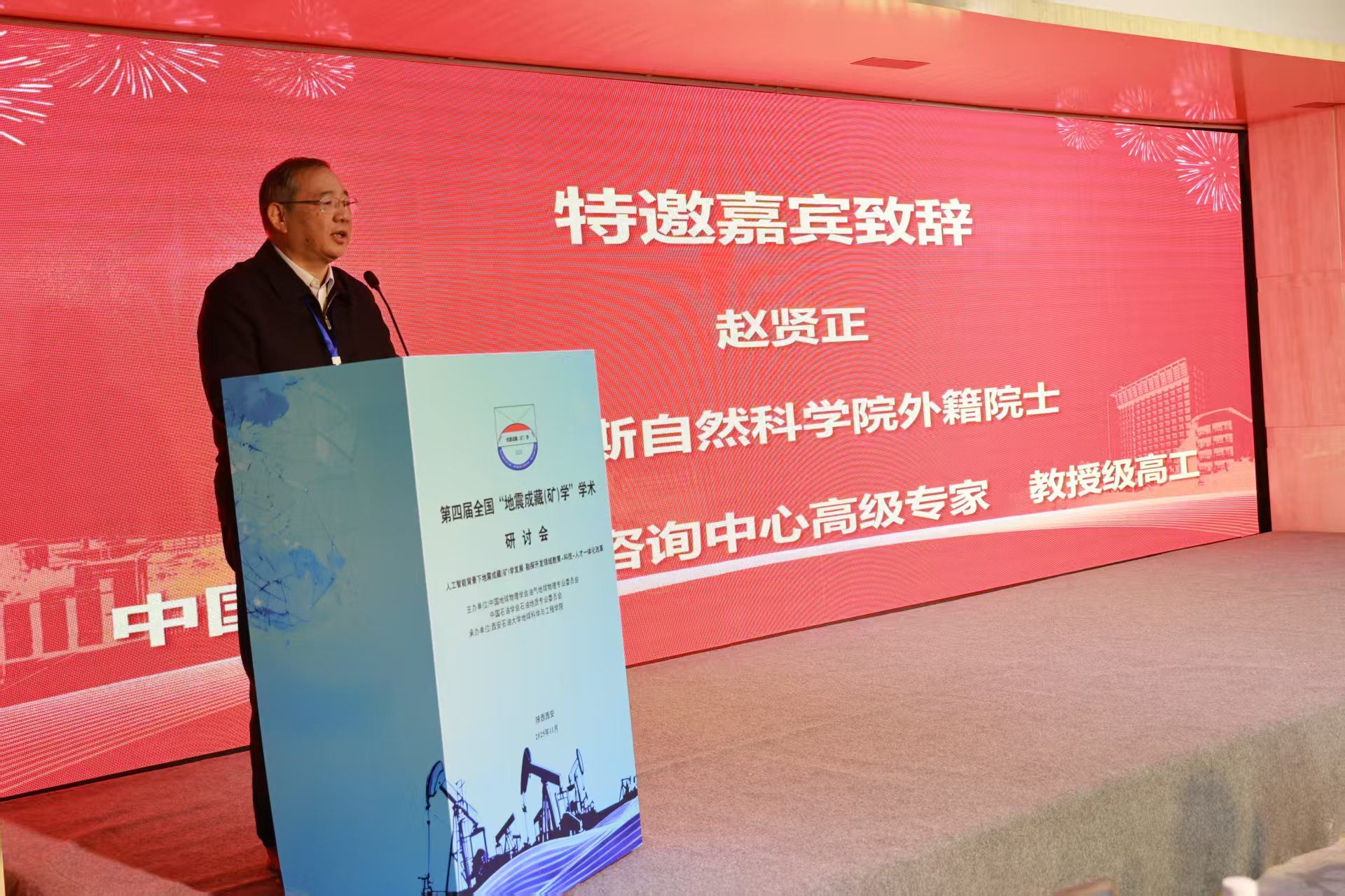 特邀嘉賓俄羅斯自然科學(xué)院外籍院士、中國石油集團(tuán)咨詢中心高級(jí)專家趙賢正教授代表會(huì)議主辦單位致辭。趙賢正表示,地震成藏(礦)學(xué)自2009年提出以來,已在理論與技術(shù)上取得顯著進(jìn)展,成為指導(dǎo)復(fù)雜地質(zhì)條件下油氣勘探的重要支撐,并呼吁廣大科技工作者加強(qiáng)學(xué)科交叉與產(chǎn)學(xué)研合作,推動(dòng)該學(xué)科向縱深發(fā)展,為我國能源勘探開發(fā)提供更強(qiáng)有力的理論和技術(shù)保障。
