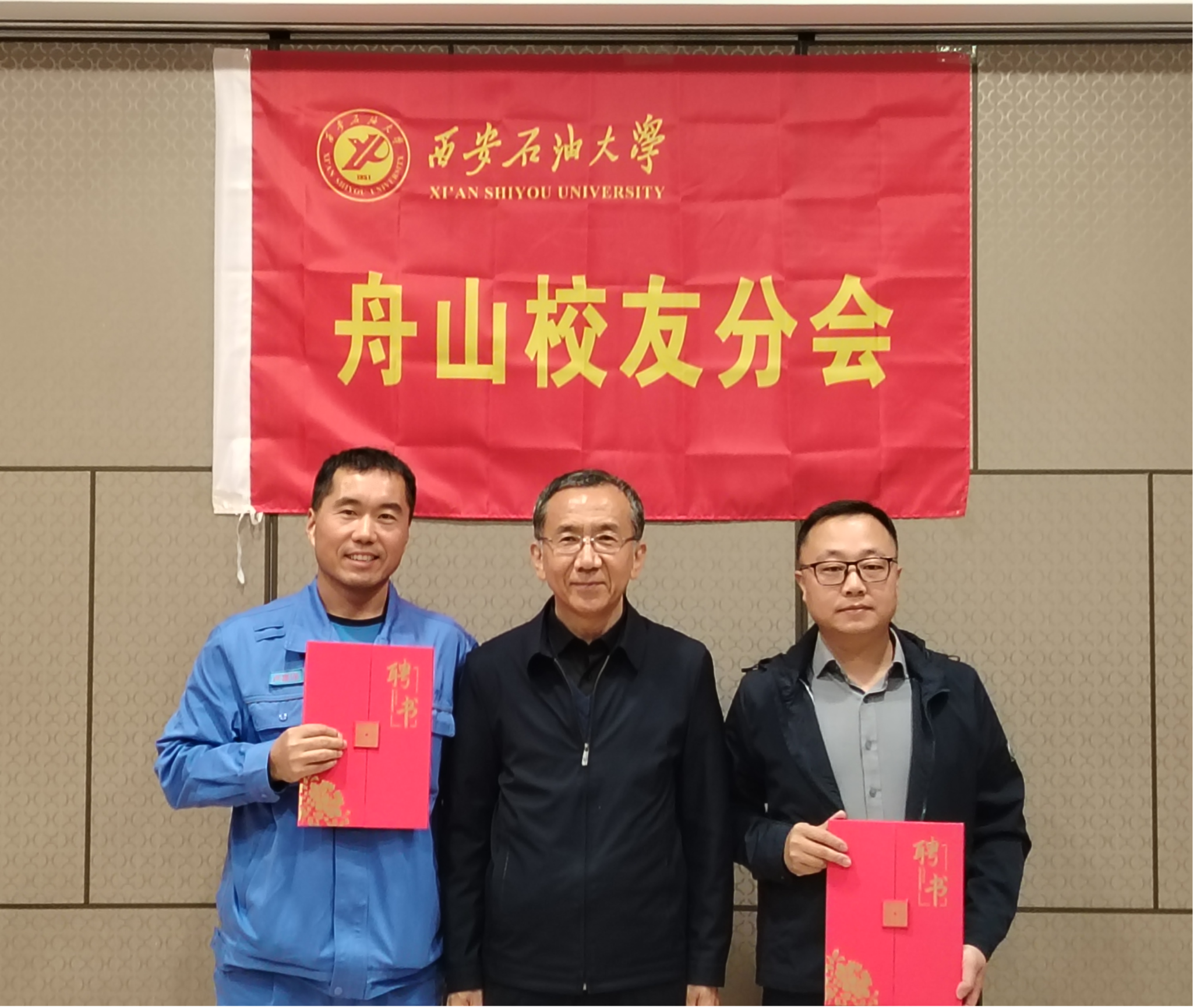 會上,張木向舟山校友分會會長、秘書長頒發(fā)了聘書;張榮軍向舟山校友分會授牌;覃彪宣讀了《關(guān)于成立西安石油大學舟山校友分會的批復》。盧喜洋向舟山校友分會副會長和副秘書長頒發(fā)了聘書。我校2008屆化學工程與工藝專業(yè)校友代兵代表舟山校友分會籌委會作了籌備工作報告。
