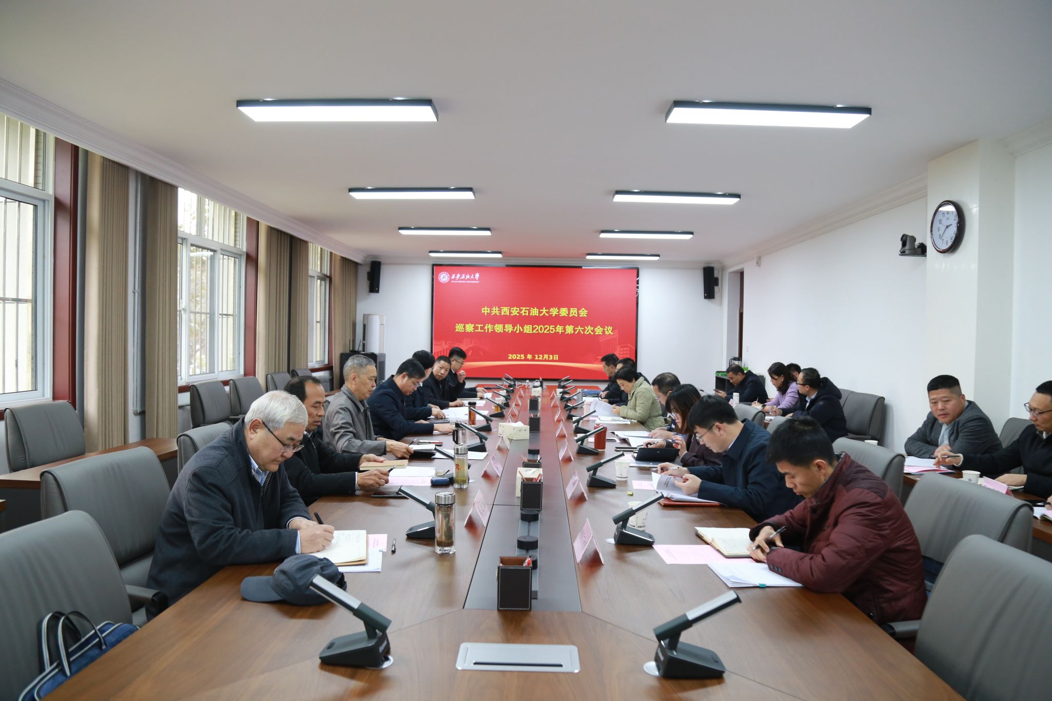 12月3日下午,學(xué)校黨委巡察工作領(lǐng)導(dǎo)小組在鄠邑校區(qū)辦公樓第三會(huì)議室召開(kāi)2025年第六次會(huì)議,聽(tīng)取第三屆黨委第二輪巡察工作總體情況匯報(bào),審議四個(gè)被巡察學(xué)院黨委的巡察情況報(bào)告。校黨委副書(shū)記、校長(zhǎng)王進(jìn)富出席會(huì)議并講話。校黨委副書(shū)記、紀(jì)委書(shū)記、監(jiān)察專(zhuān)員,黨委巡察工作領(lǐng)導(dǎo)小組副組長(zhǎng)王輝強(qiáng)主持會(huì)議。學(xué)校黨委巡察工作領(lǐng)導(dǎo)小組成員單位負(fù)責(zé)人參加會(huì)議。黨委第一、第二巡察組和黨委巡察辦全體同志列席會(huì)議。