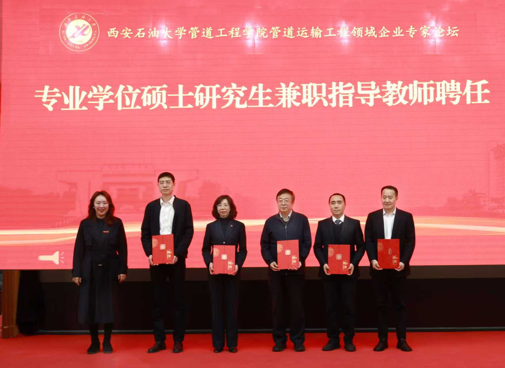 活動(dòng)現(xiàn)場(chǎng)還舉行了陜西省“四主體一聯(lián)合”油氣管道維搶修校企聯(lián)合研究中心揭牌儀式,以及管道工程學(xué)院專業(yè)學(xué)位研究生兼職指導(dǎo)教師聘任儀式,進(jìn)一步夯實(shí)了校企協(xié)同育人與科研合作的基礎(chǔ)。