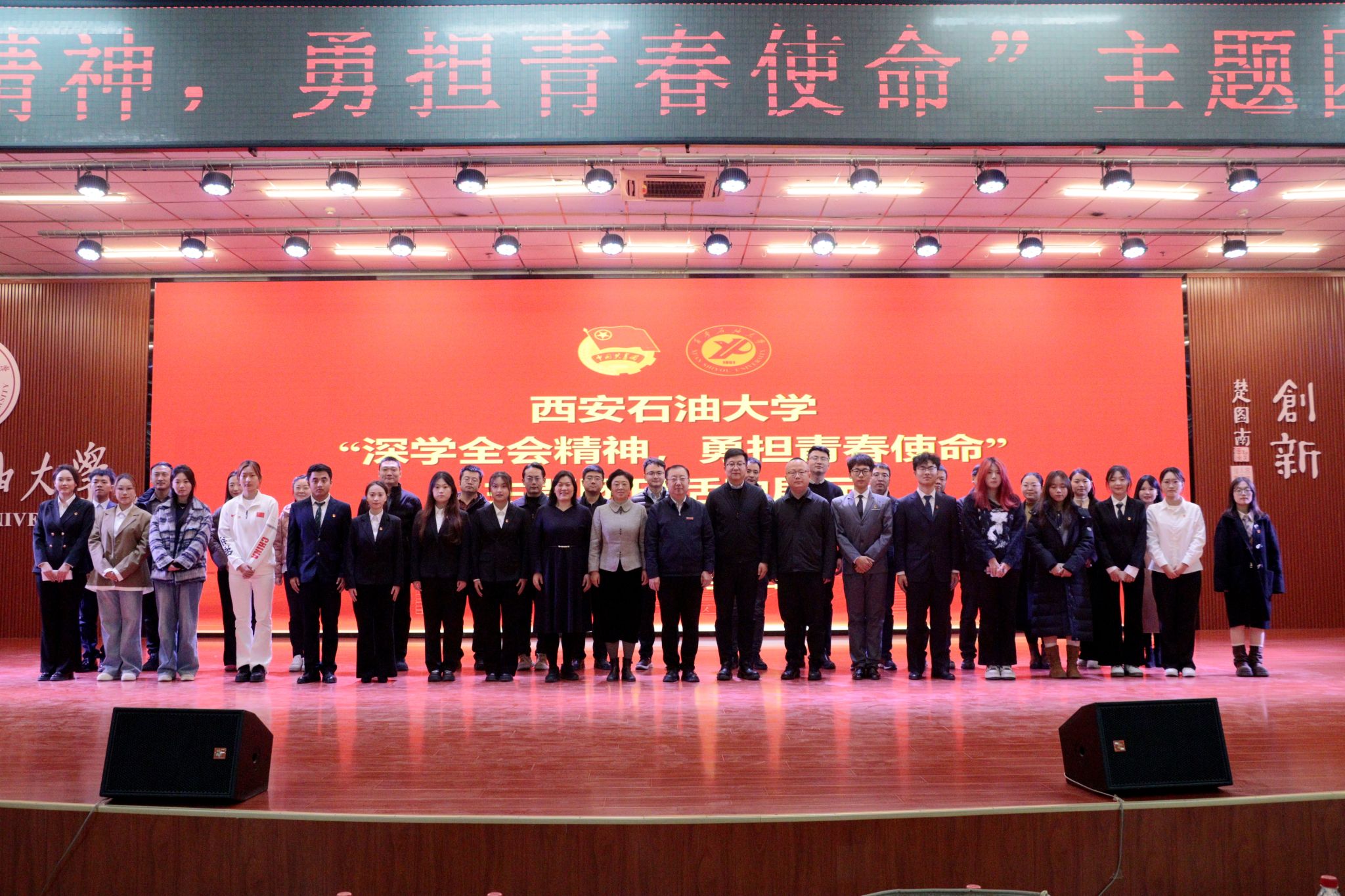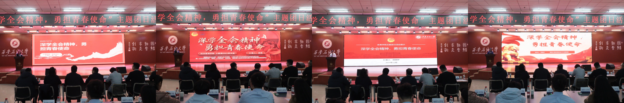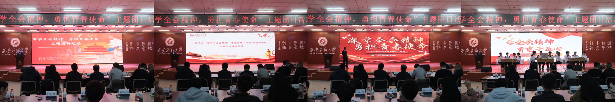 為引導(dǎo)團員青年深刻領(lǐng)會黨的二十屆四中全會精神核心要義,集中展示我校基層團組織風(fēng)采和主題團日活動實效,發(fā)揮先進典型的示范引領(lǐng)作用,進一步激發(fā)全校團員青年的愛國熱情與奮斗精神,12月17日晚,學(xué)校在鄠邑校區(qū)騰輝大學(xué)生活動中心舉辦“深學(xué)全會精神,勇?lián)啻菏姑敝黝}團日活動展示,副校長種宇宏出席,相關(guān)職能處室負責(zé)人擔(dān)任評委,各院(系)團委(團總支)書記及300余名學(xué)生代表參加活動。
