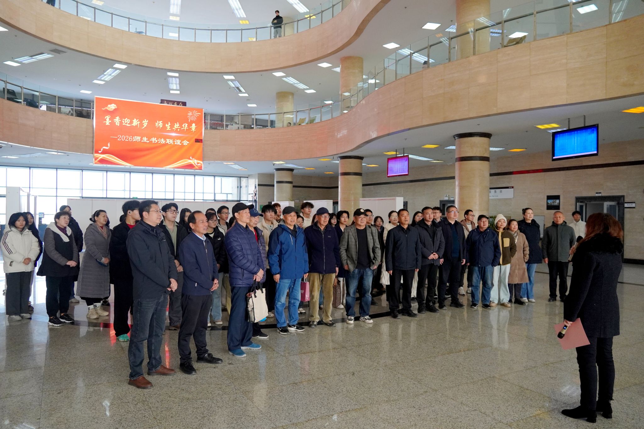 12月18日上午,“墨香迎新歲師生共華章”2026迎元旦師生書法聯(lián)誼會在鄠邑校區(qū)圖書館舉行,此次活動由圖書館、離退休工作處、人文學院、大學生書法協(xié)會聯(lián)合舉辦。校黨委副書記程永清出席活動并致辭,相關職能部門和院(系)負責人、校老年書畫協(xié)會和退休老教師代表應邀出席,我校大學生書畫協(xié)會全體會員、人文學院學生代表參加了活動,活動由圖書館館長李濤主持。
