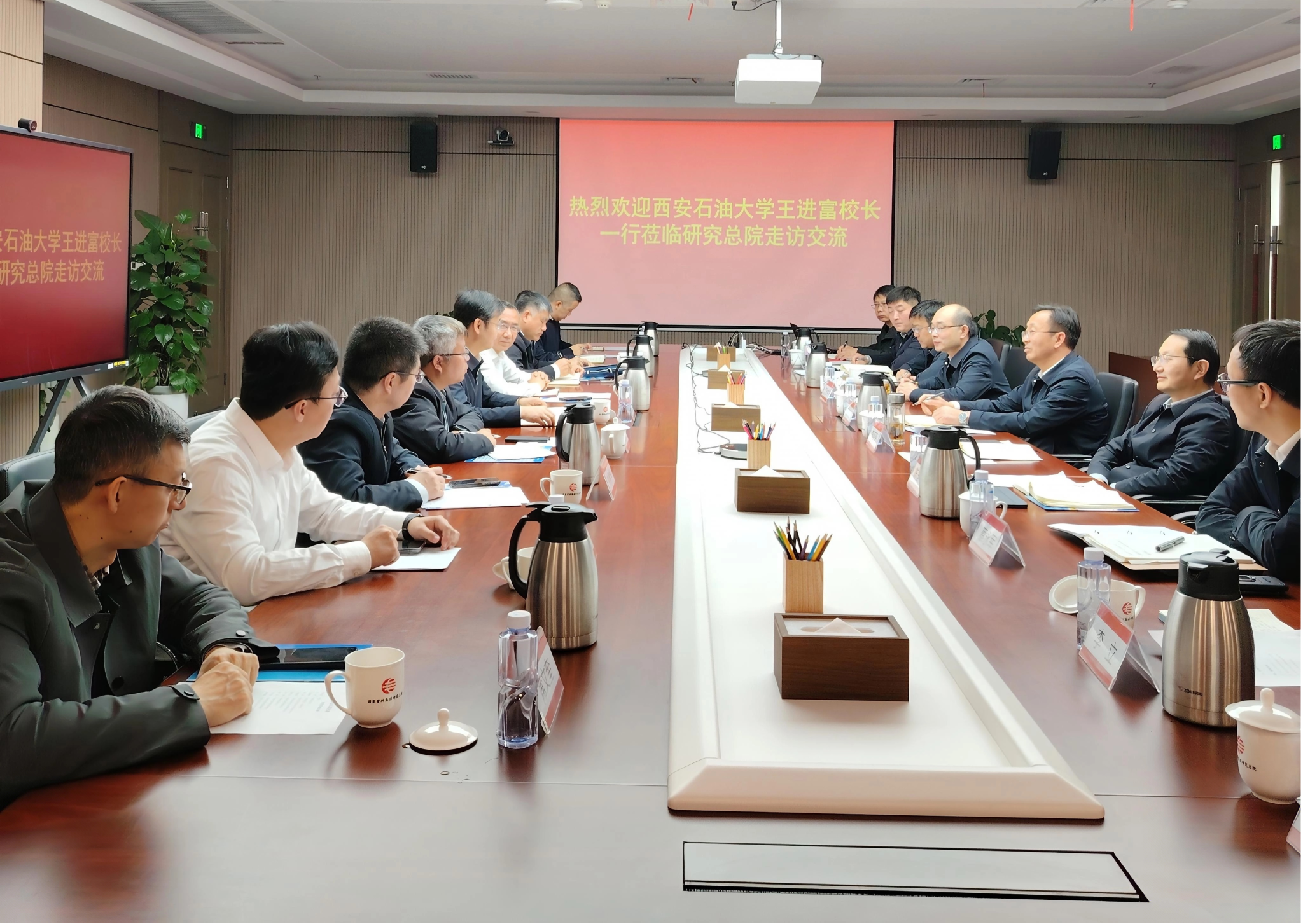 在國家管網(wǎng)集團研究總院走訪期間,王進富一行與國家管網(wǎng)研究總院院長張對紅、副院長李亞平及相關(guān)職能部門負責(zé)同志和校友代表座談交流。王進富對國家管網(wǎng)集團研究總院的熱情接待表示感謝。他指出,學(xué)校作為能源領(lǐng)域特色高校,近年來秉持“開放辦學(xué)、智慧辦學(xué)、服務(wù)辦學(xué)”理念,堅定踐行“回歸初心,回歸行業(yè)”發(fā)展定位,把服務(wù)能源行業(yè)企業(yè)高質(zhì)量發(fā)展作為學(xué)校立身之本。近年來學(xué)校緊盯國家管網(wǎng)發(fā)展需求,以產(chǎn)業(yè)應(yīng)用為面向,以學(xué)科體系為依托,先后成立了卓越工程師學(xué)院和管道工程學(xué)院,針對性調(diào)整了相關(guān)專業(yè)學(xué)科體系,重點強化了管網(wǎng)仿真、管道檢測、材料焊接等學(xué)科領(lǐng)域的技術(shù)供給側(cè)改革,主動適配產(chǎn)業(yè)發(fā)展與技術(shù)轉(zhuǎn)型的新形勢、新要求。期待以此次交流為契機,雙方優(yōu)勢互補,共享發(fā)展機遇、共建創(chuàng)新聯(lián)合體、共育管道新人才、共赴管道新未來,共同服務(wù)國家能源戰(zhàn)略,推動經(jīng)濟高質(zhì)量發(fā)展。