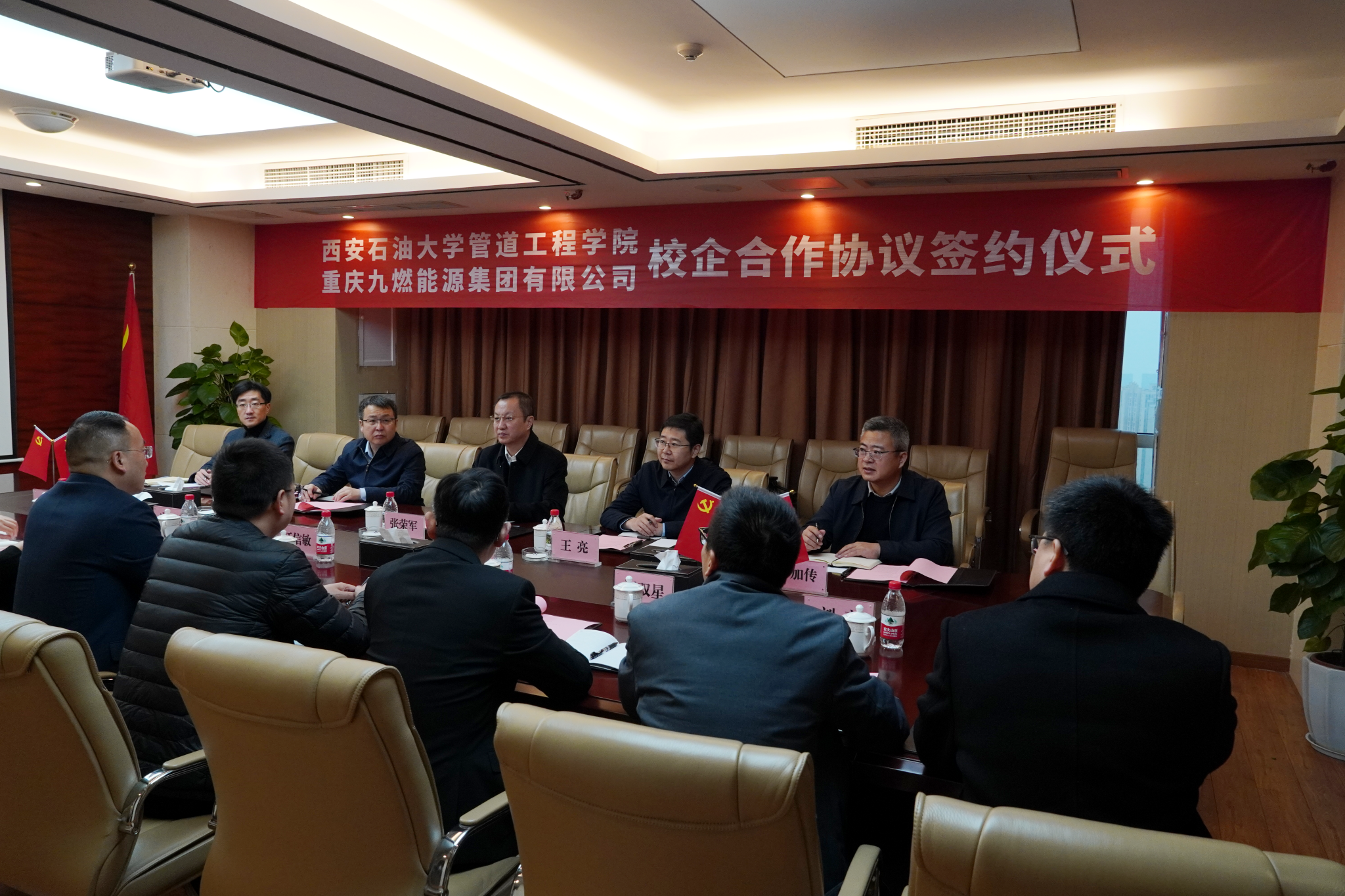 為促進(jìn)我校產(chǎn)學(xué)研協(xié)同發(fā)展與企業(yè)需求精準(zhǔn)對(duì)接,實(shí)現(xiàn)資源共享與優(yōu)勢(shì)互補(bǔ),12月22日,副校長(zhǎng)張榮軍帶隊(duì)赴重慶九燃能源集團(tuán)有限公司(以下簡(jiǎn)稱(chēng)“九燃能源集團(tuán)”)交流座談,并代表學(xué)校與集團(tuán)簽署校企合作框架協(xié)議,九燃能源集團(tuán)董事長(zhǎng)江信敏及相關(guān)部門(mén)負(fù)責(zé)人出席活動(dòng)。雙方圍繞課題研究、專(zhuān)業(yè)建設(shè)、人才培養(yǎng)、學(xué)生實(shí)習(xí)就業(yè)、員工繼續(xù)教育與培訓(xùn)等方面展開(kāi)深入交流。
