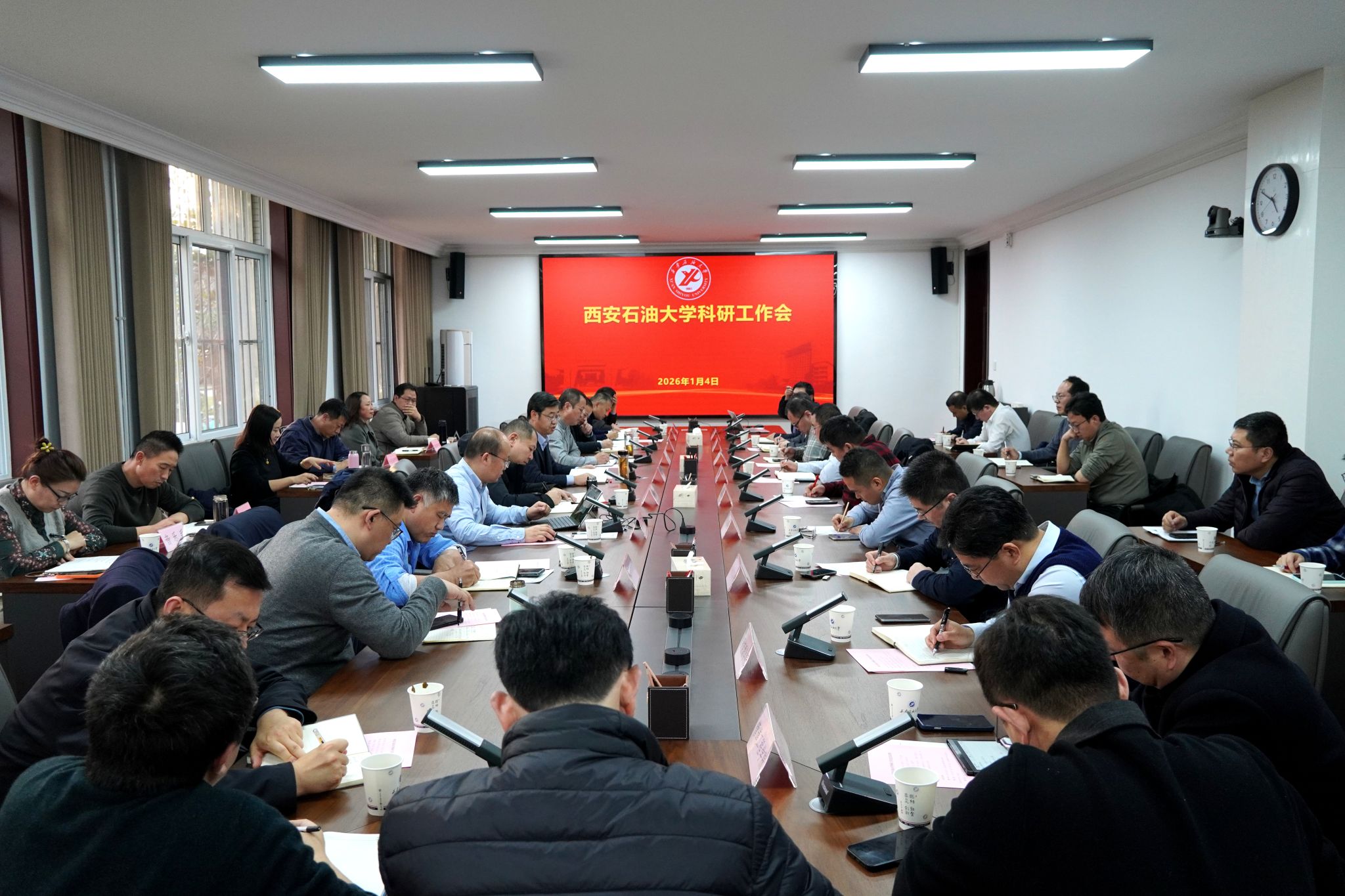王進富作總結講話,他對學校2025年科研創(chuàng)新工作成效表示充分肯定,對各院(系)的辛勤付出表示衷心感謝,對下一步科研工作提出具體要求。一要統(tǒng)一思想。2025年度科研創(chuàng)新工作邁上新臺階,提振了全??蒲泄ぷ髡叩男判摹RM一步統(tǒng)一思想,持續(xù)強化有組織的科研,改革各種機制體制問題,確保“十五五”規(guī)劃取得良好開局。二要正視問題。“十四五”期間,學??蒲幸?guī)模與層次顯著提升,標志性成果不斷涌現(xiàn),但是面對行業(yè)競爭和資源短缺,學??蒲泄ぷ鬟€存在不足。第一,有組織科研亟待加強,具體表現(xiàn)在大項目不夠多,跨學科大團隊的協(xié)作不夠,科研生態(tài)還需進一步優(yōu)化,因此要從學校的政策層面、評價層面、管理層面等持續(xù)發(fā)力。第二,青年科研骨干成長體系亟待優(yōu)化,青年教師作為學??蒲泄ぷ鞯闹髁姾秃髠淞α浚ㄟ^大科研項目培養(yǎng)青年科研骨干,在政策創(chuàng)新上支持青年教師主體作用發(fā)揮和未來科研力量培育。第三,學科轉化優(yōu)勢亟待提升,學校作為行業(yè)特色鮮明的省屬高水平大學,主干學科必須要找到自身的獨特優(yōu)勢,通過有組織的方式來不斷凝練和培育科研特色方向和優(yōu)勢領域。三要謀劃未來。第一,強化有組織科研,優(yōu)化公關模式。區(qū)域上重點突出鄂爾多斯盆地,關注延長和長慶等重點領域,打破學科壁壘,形成跨學科、跨專業(yè)的科研團隊。第二,深化科研政策改革,營造良好的創(chuàng)新生態(tài)。首先創(chuàng)新思路,從科研合作組織的層面上,要改變傳統(tǒng)單兵作戰(zhàn)和科研合作模式;其次創(chuàng)新政策,科研管理部門要不斷強化資源配置,多途徑調動科研工作者積極性;再次,創(chuàng)新組織和創(chuàng)新評價,要不斷改革人事制度和人才政策,強化科研大項目的引領作用,激活個體的動力和活力。第三,深化開放合作,拓展科研格局。要不斷深化國際開放合作,持續(xù)開放辦學,與龍頭企業(yè)開展實質合作,共建國家級平臺、共同承辦國際會議等,充分依托學校國際合作辦學的優(yōu)勢,積極開展國際科研合作。王進富最后強調,2026年是“十五五”規(guī)劃的開局之年,科研工作要更加聚焦“兩深一非一老”油氣勘探開發(fā)主戰(zhàn)場,緊密服務國家重大戰(zhàn)略需求和區(qū)域經濟社會發(fā)展。立足學校自身發(fā)展定位,緊密對接產業(yè)需求,推動產業(yè)和科技創(chuàng)新協(xié)同發(fā)展,激發(fā)教師科研創(chuàng)新的動力與潛力。