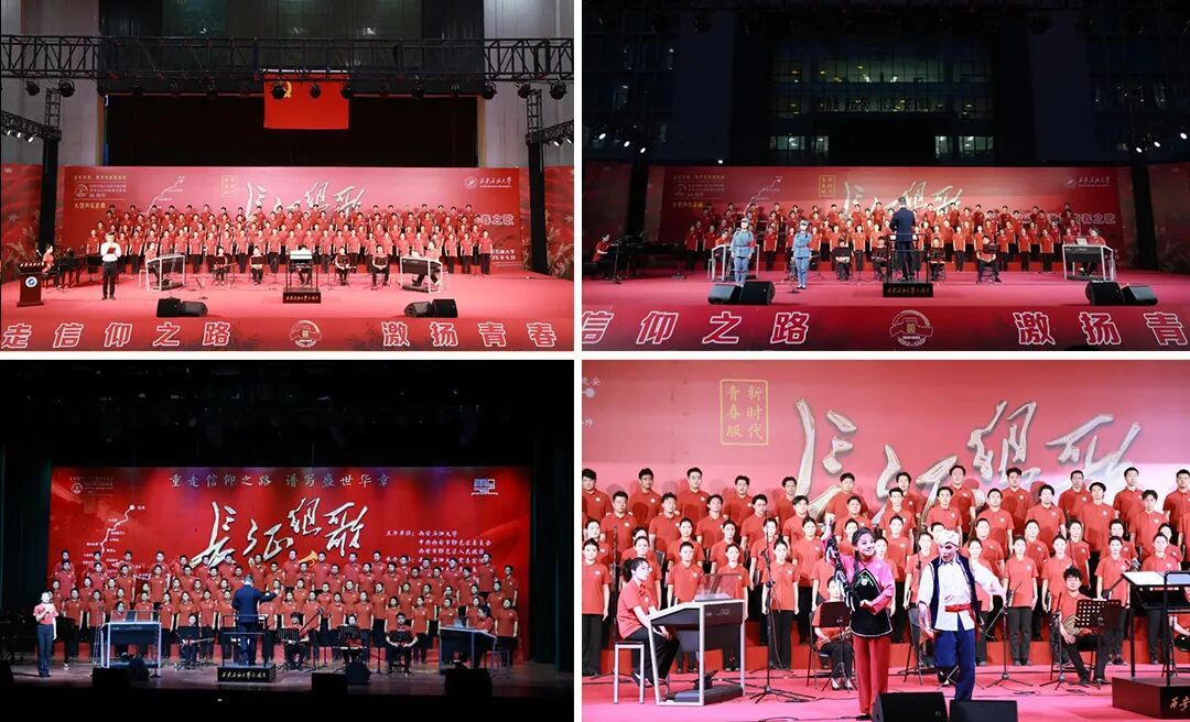 《長征組歌》音樂黨課鑄魂,黨建育人融入藝術(shù)實踐?!?/strong>長征組歌》音樂黨課作為黨建與藝術(shù)美育深度融合的創(chuàng)新實踐,以藝術(shù)化表達與沉浸式體驗的表達方式激活紅色記憶,將波瀾壯闊的長征史詩轉(zhuǎn)化為可聽、可感、可悟的沉浸式藝術(shù)思政課。宣講人化身“精神火炬手”,在雄渾旋律中串聯(lián)歷史節(jié)點、講述英雄故事,讓師生在音符與敘事的共鳴中深刻體悟理想信念的力量。該黨課不僅在校園內(nèi)常態(tài)化展演,更走出校門、走進政府機關(guān)、醫(yī)療機構(gòu),奔赴革命圣地延安等地開展公益演出,將紅色基因傳遞到更廣闊的空間。這種黨建與美育的雙向賦能模式,使黨建育人從理論灌輸升華為情感認同,讓紅色精神在藝術(shù)熏陶中落地生根,成為學校黨建育人的特色品牌。
