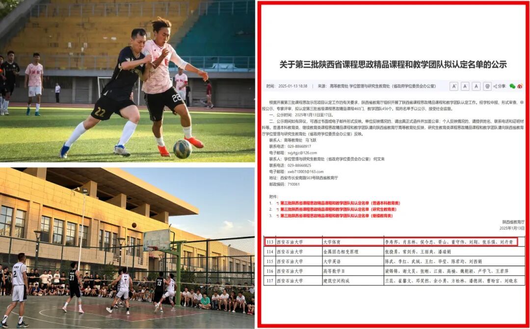 深耕體育思政內(nèi)涵,創(chuàng)新特色育人模式。學(xué)院立足石油石化行業(yè)特色背景,創(chuàng)新提出“雙精神互融”體育育人理念,推動“鐵人精神”與體育精神的深度耦合,打造具有一定特色的育人模式。學(xué)院設(shè)立“體育素養(yǎng)與石油職業(yè)適應(yīng)性”專題模塊,在訓(xùn)練中融入“鐵人式”體能挑戰(zhàn),在競賽中打造“石油杯”等行業(yè)主題賽事,將“能源報國”使命擔(dān)當(dāng)與體育競技堅韌品格深度融合,構(gòu)建起“課內(nèi)外一體化”全域育人生態(tài)。2025年,《大學(xué)體育》課程教學(xué)團(tuán)隊成功獲批陜西省課程思政示范課程和教學(xué)團(tuán)隊,其體育課程思政建設(shè)經(jīng)驗被多所高校借鑒采納,形成“一校創(chuàng)新、多校聯(lián)動”的推廣格局,讓西石大體育育人經(jīng)驗走出校園、輻射行業(yè)。
