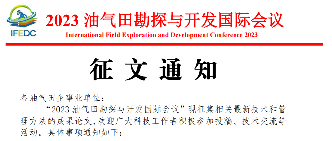 2023油氣田勘探與開發(fā)國際會議(IFEDC)征文通知