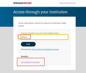 第三步:在搜索框里面輸入shiyou,點(diǎn)擊“find”,選擇Xi’an Shiyou University”,即可正常使用。