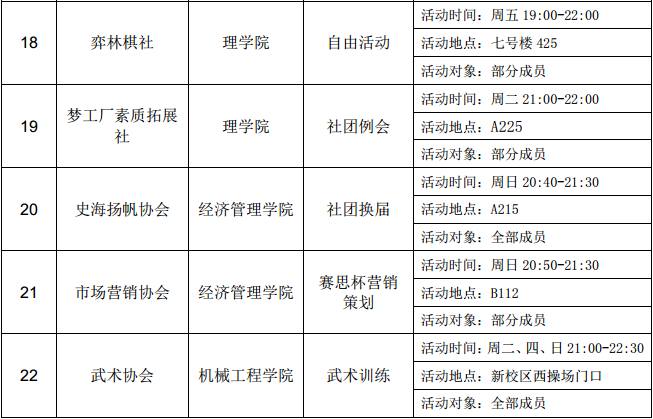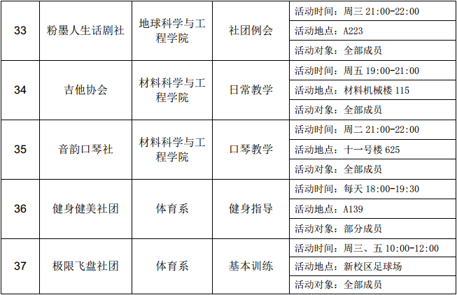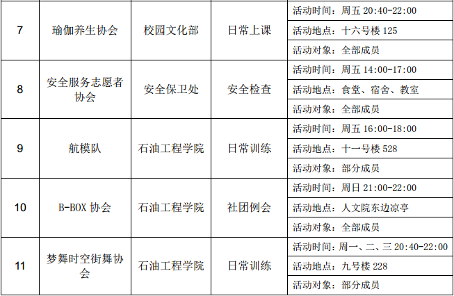 西安石油大學(xué)2016—2017學(xué)年第二學(xué)期第十三周社團(tuán)活動(dòng)一覽表