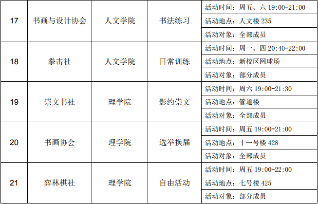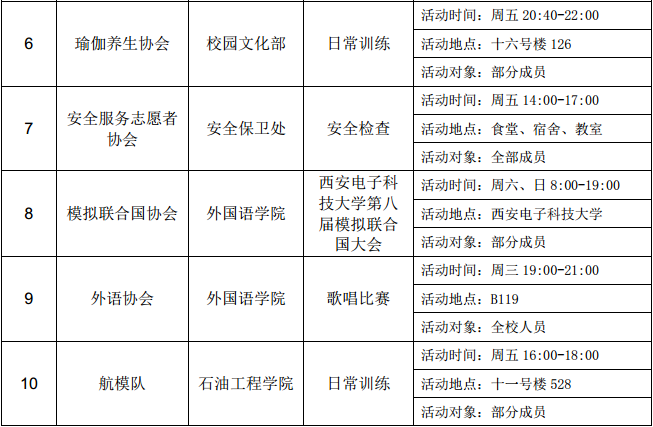 西安石油大學(xué)2016—2017學(xué)年第二學(xué)期第十一周社團活動一覽表