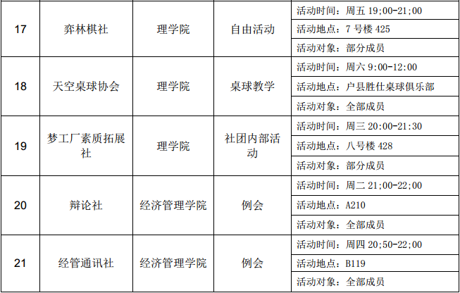 西安石油大學2016—2017學年第二學期第七周社團活動一覽表