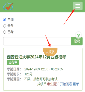 報名成功后到開考時間(12月3日12:00)點擊右側(cè) “開始答卷” 即考試開啟